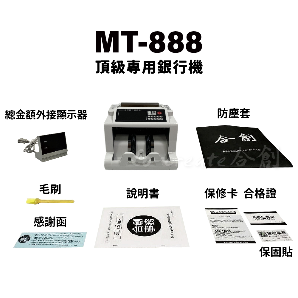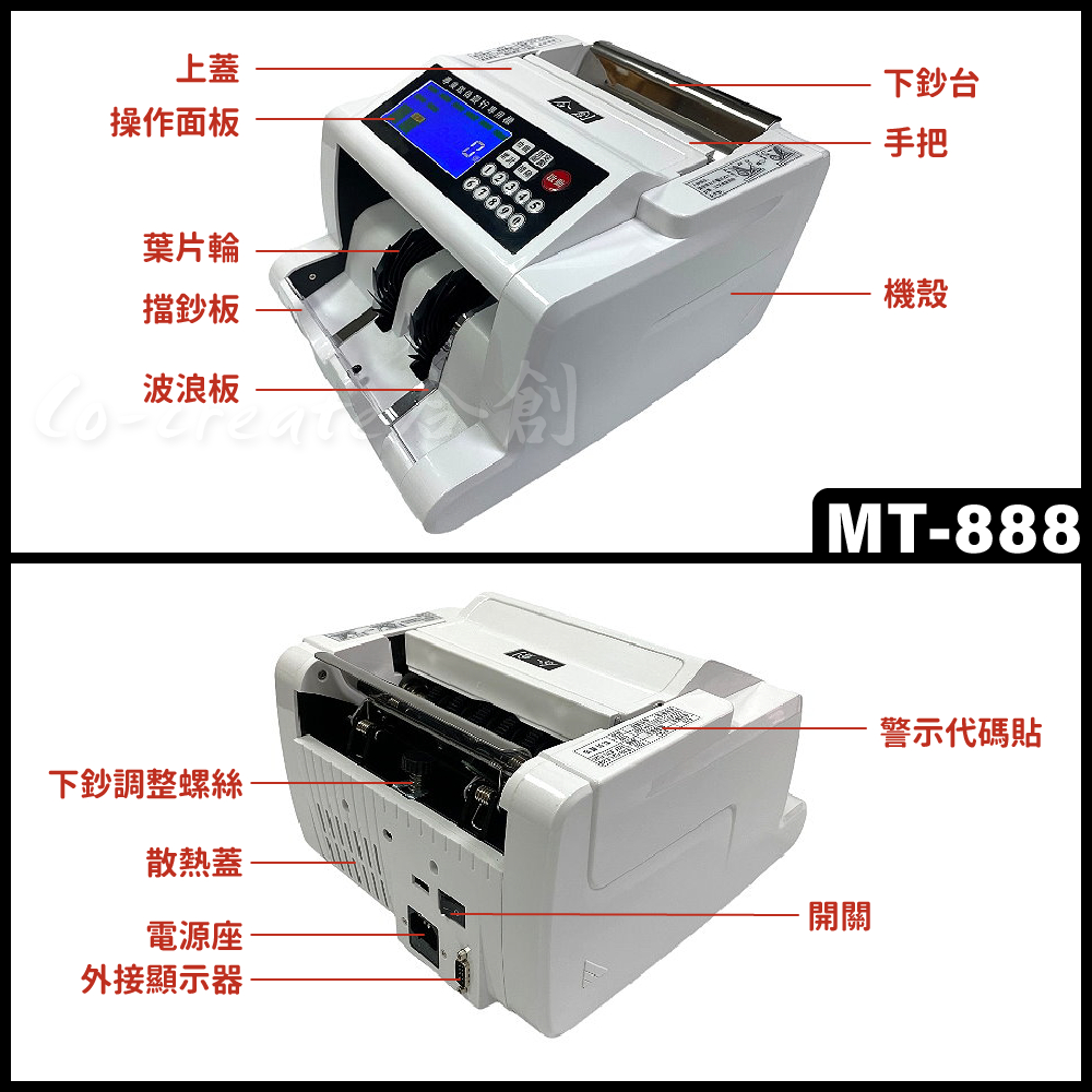 【Co-create 合創】MT-888 頂級明細金額顯示 (免運+贈防塵套含稅)|十年品牌機 驗鈔機 點鈔機 數鈔機MT-888『頂級銀行專用機』送外顯器|MT-988『頂級銀行專用機』送外顯器|MT-6000『頂級銀行專用機』送外顯器Money CountersCo create 合創