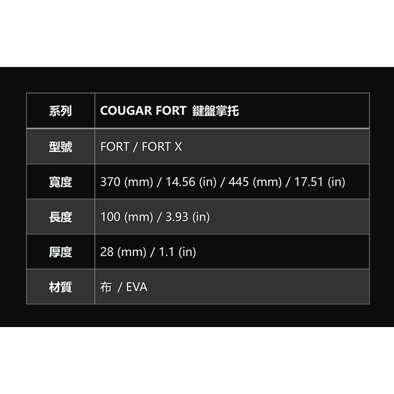 Cougar 美洲獅 FORT / FORT X 手靠墊 手托 掌托 人體工學 記憶棉 波浪型防滑橡膠墊445 X 100 X 28 (mm)|370 X 100 X 28 (mm)Mouse PadsCOUGAR 美洲獅官方授權旗艦店