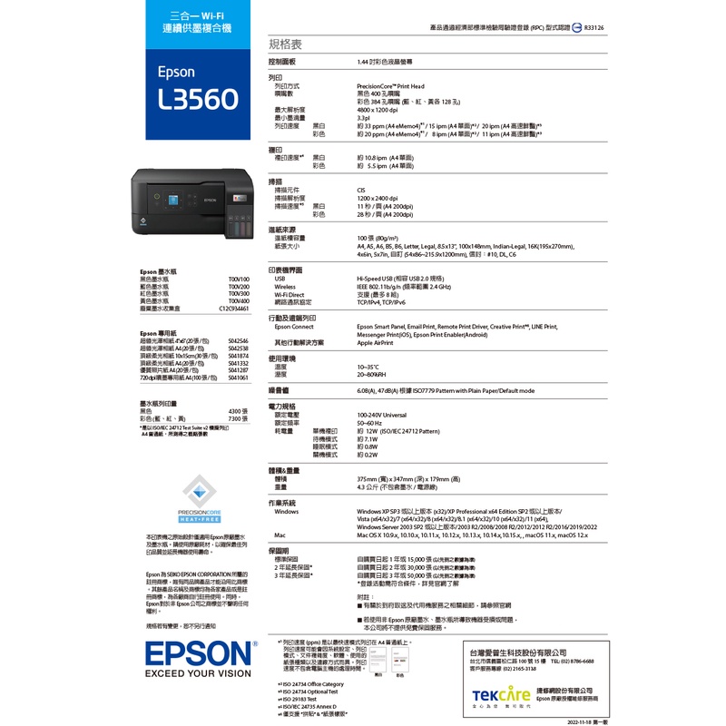 EPSON L3560 三合一Wi-Fi 彩色螢幕 連續供墨複合機加購墨水9折(登錄送) 公司貨EPSON L3560 三合一Wi-Fi 彩色螢幕 連續供墨複合機加購墨水9折(登錄送) 公司貨Printers, Scanners & Photocopy MachinesEPSON 官方旗艦店