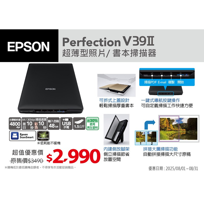 EPSON Perfection V39II A4超薄型照片/書本掃描器EPSON Perfection V39II A4超薄型照片/書本掃描器Printers, Scanners & Photocopy MachinesEPSON原廠授權經銷