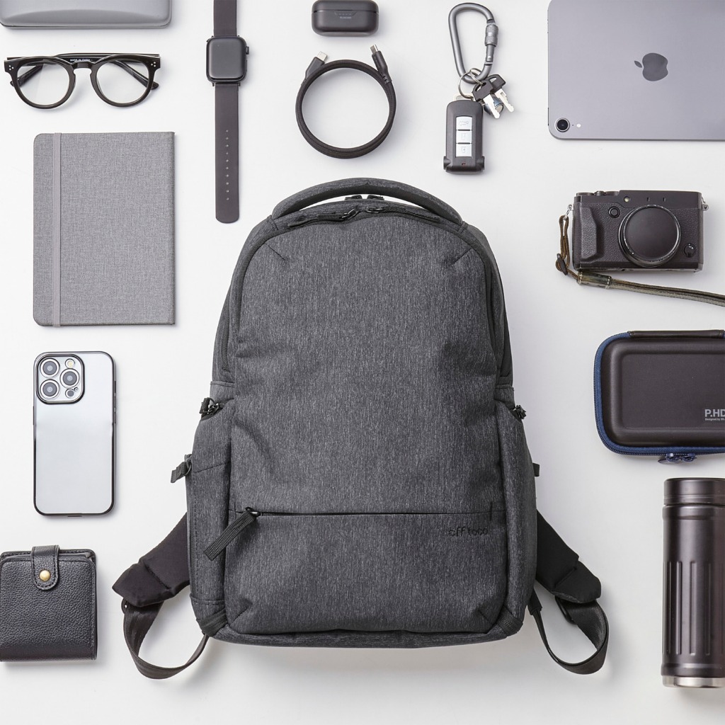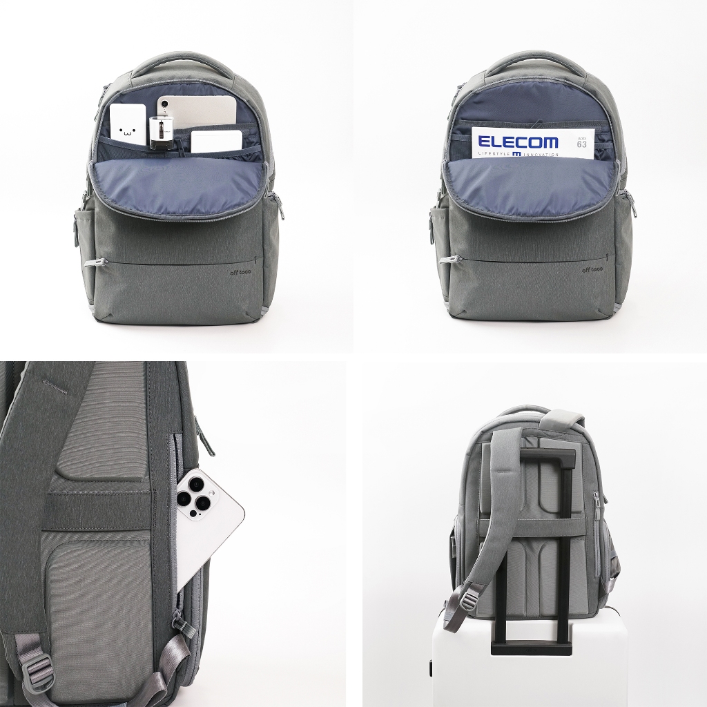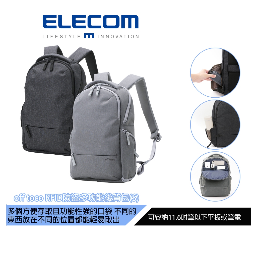 【日本ELECOM】off toco RFID防盜多功能後背包(S) 黑/灰 輕巧型日常後背可裝11.6吋以下平板 筆電黑|灰OthersELECOM 台灣旗艦店