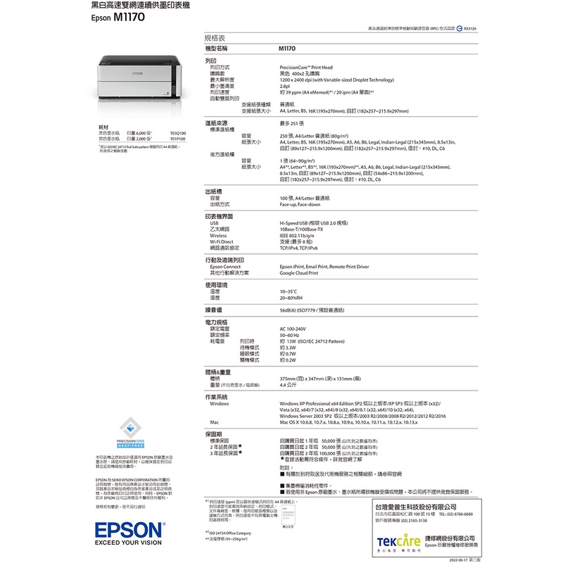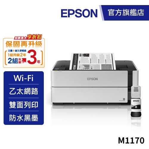 EPSON M1170 單功能WiFi黑白連續供墨複合機加購墨水9折(登錄送) 公司貨EPSON M1170 單功能WiFi黑白連續供墨複合機加購墨水9折(登錄送) 公司貨Printers, Scanners & Photocopy MachinesEPSON 官方旗艦店