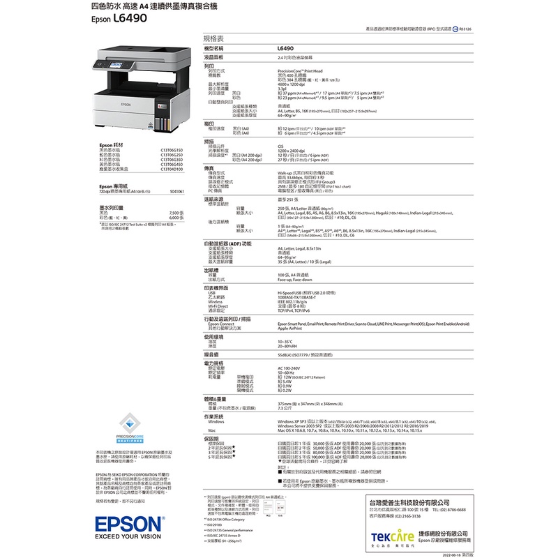 EPSON L6490 四色防水 高速A4連續供墨傳真複合機加購墨水9折(登錄送) 公司貨EPSON L6490 四色防水 高速A4連續供墨傳真複合機加購墨水9折(登錄送) 公司貨Printers, Scanners & Photocopy MachinesEPSON 官方旗艦店