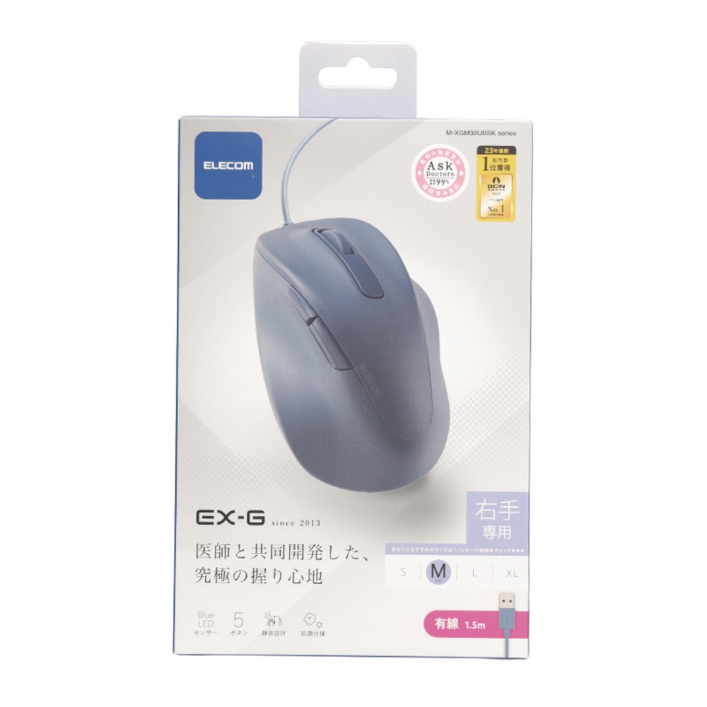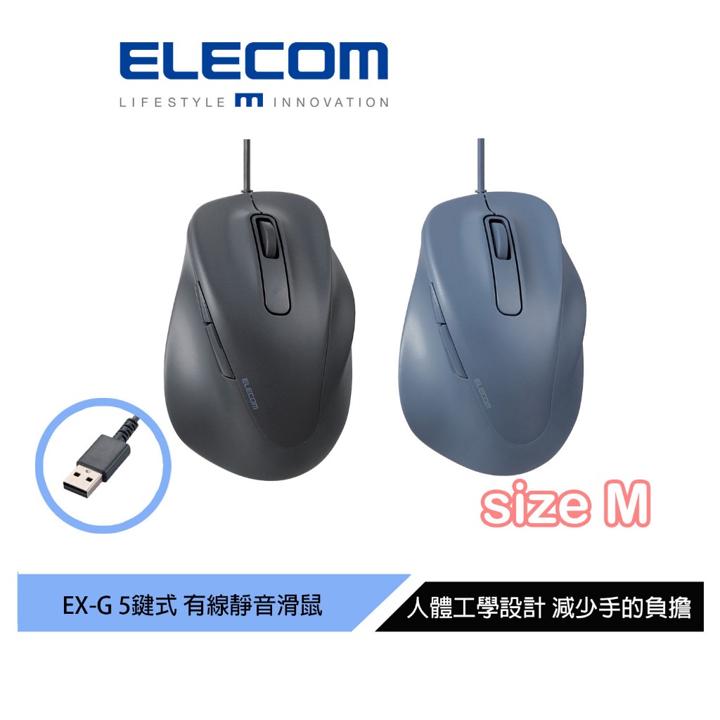 【日本ELECOM】EX-G人體工學有線靜音滑鼠 M 黑/藍 適合中小手型女生 減少手腕負擔黑|藍MiceELECOM 台灣旗艦店
