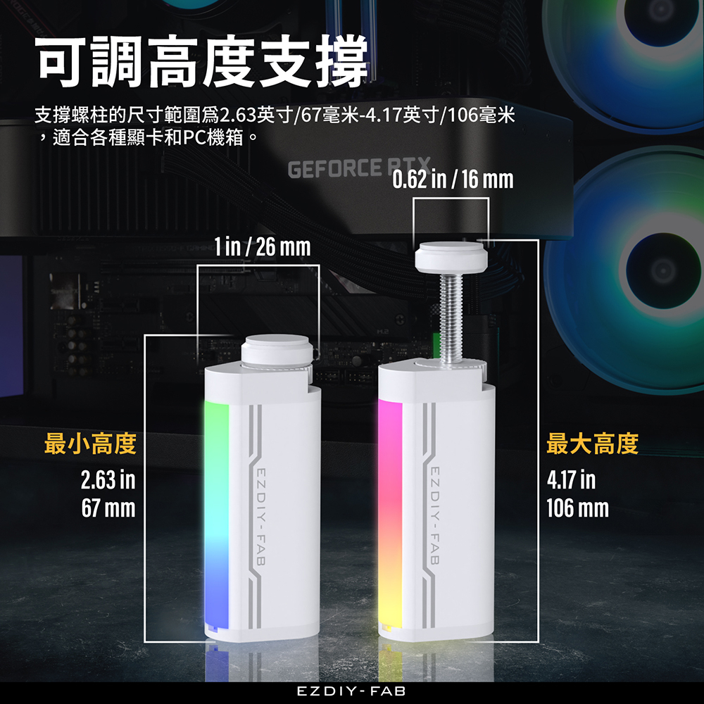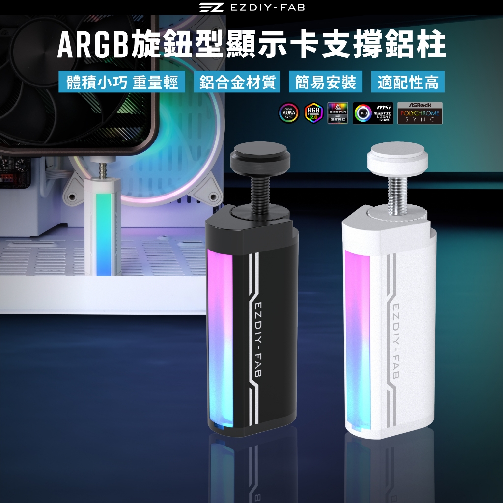 EZDIY-FAB GPU支架 5V 3PIN ARGB 顯卡支撐支架 GPU可旋轉調整高度支架 顯卡支架鋁柱-黑/白色白色|黑色OthersEZDIY-FAB官方網路商店