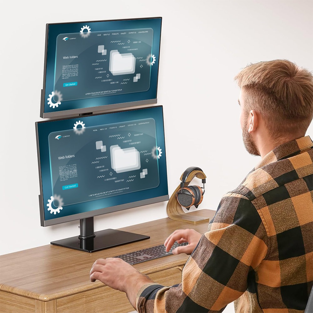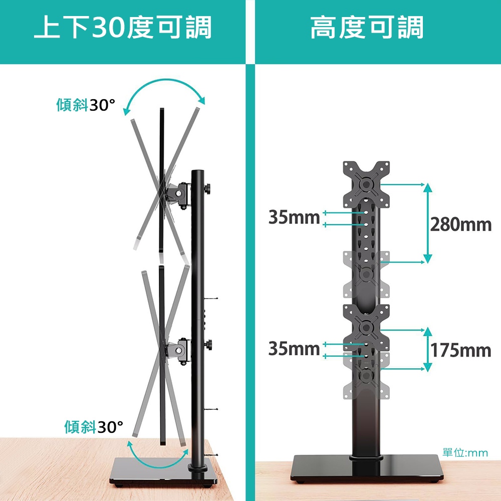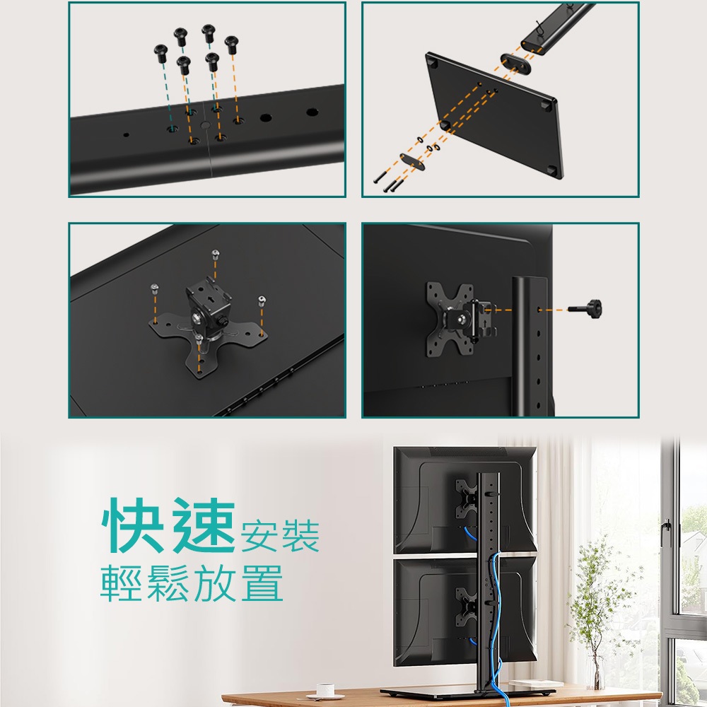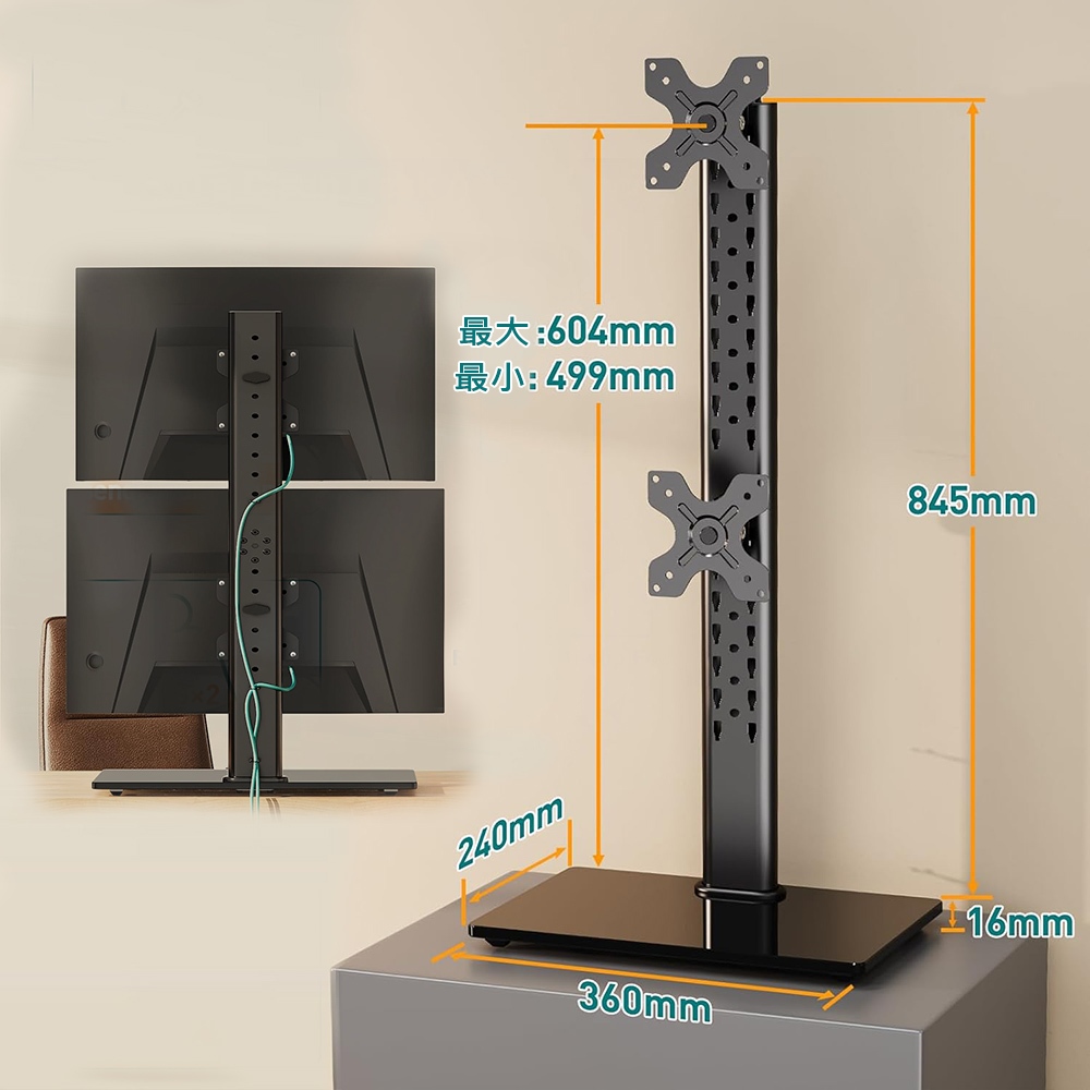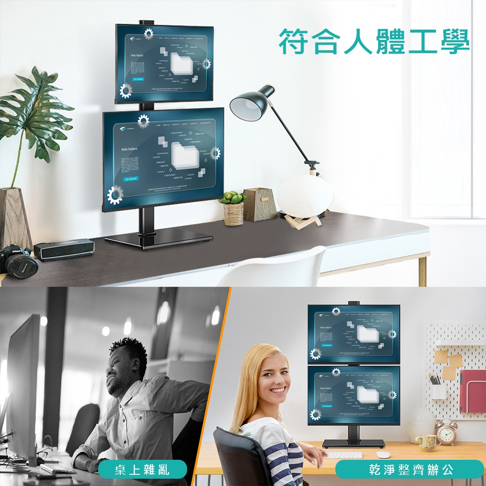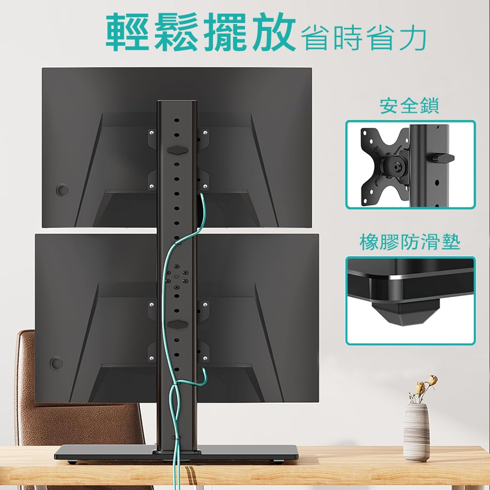 Ermutek 桌上型13~32吋雙螢幕直立式懸掛支架底座 (黑色/雙螢幕使用/高度可調/直放底座設計)Ermutek 桌上型13~32吋雙螢幕直立式懸掛支架底座 (黑色/雙螢幕使用/高度可調/直放底座設計)Ermutek 專業辦公支架
