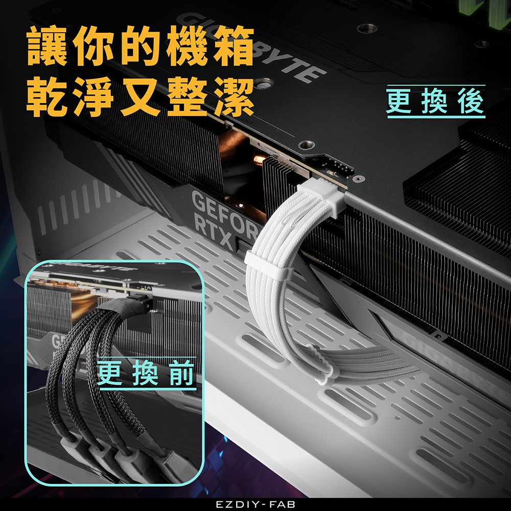 EZDIY-FAB GPU電供延長線,16pin(12+4)12VHPWR PCIe 5.0轉PCIE 8pin x3白色|黑色|全白化|黑白|黑灰|黑紅OthersEZDIY-FAB官方網路商店