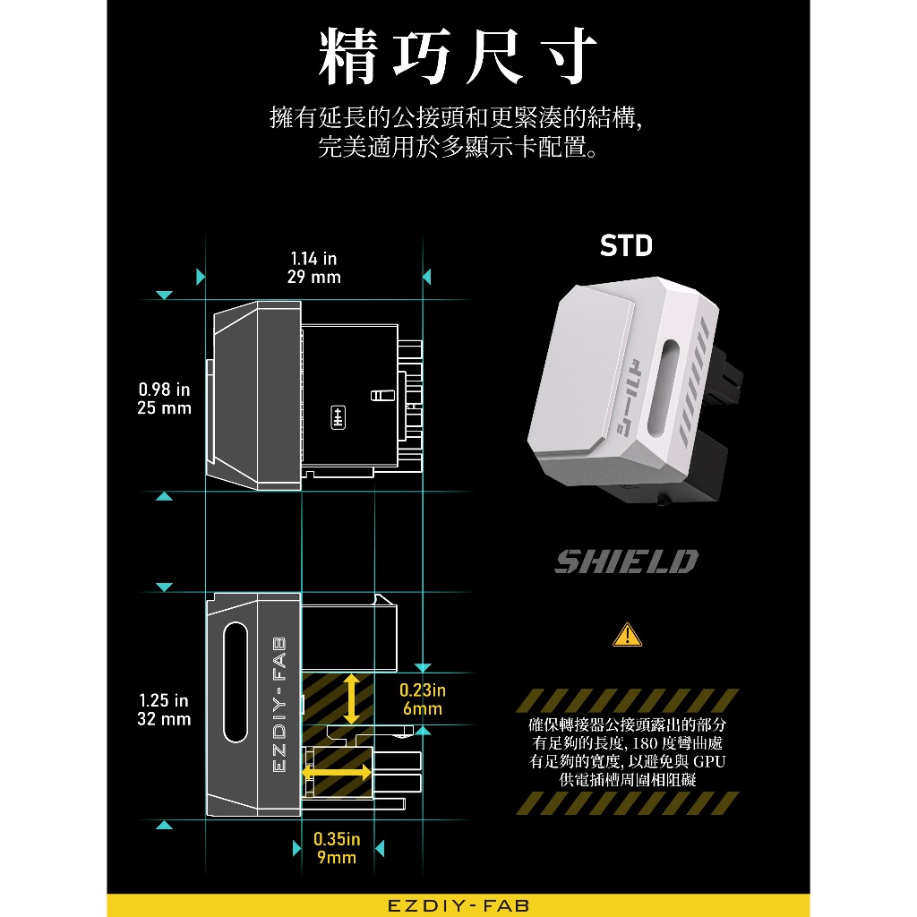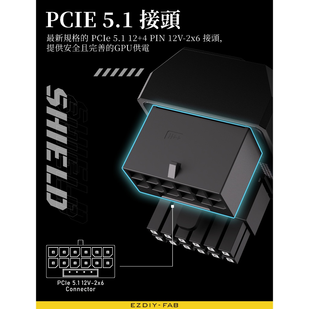 EZDIY-FAB PCIe5.1 600W12VHPWR盾系列180度”正向”(STD) 12V-2×6 GPU轉接頭黑色 STD|白色 STD|紫色 STD|紅色 STDOthersEZDIY-FAB官方網路商店