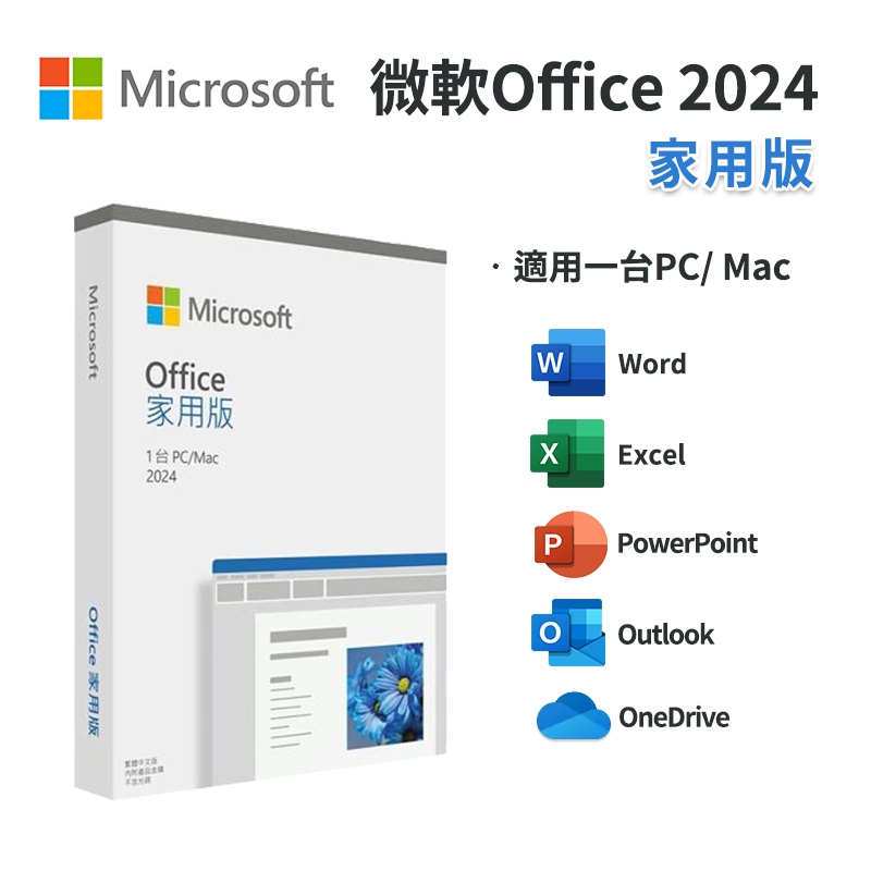 Microsoft 微軟 Office 2024 家用版 中文 永久授權 盒裝【全新 現貨】文書處理 支援MAC 軟體OFFICE 2024家用版esoon量販3C電玩商城