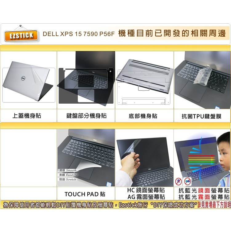 【Ezstick】DELL XPS 15 7590 P56F 筆電機身貼|霧面質感款|上蓋+鍵盤週圍+底部貼|霧面螢幕貼(加購價)-單購|鏡面防藍光螢幕貼(加購價)-單購|霧面防藍光螢幕貼(加購價)-單購|機身貼(含上蓋+鍵盤週圍+底部貼)共三張|鏡面螢幕貼(加購價)-單購Laptop Skins & CoversEZstick 3C商品保護賣場