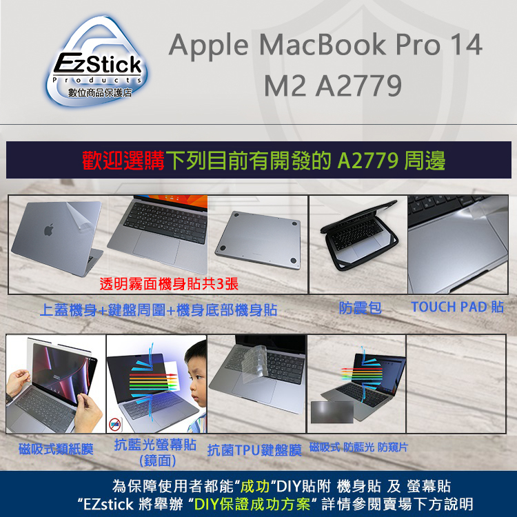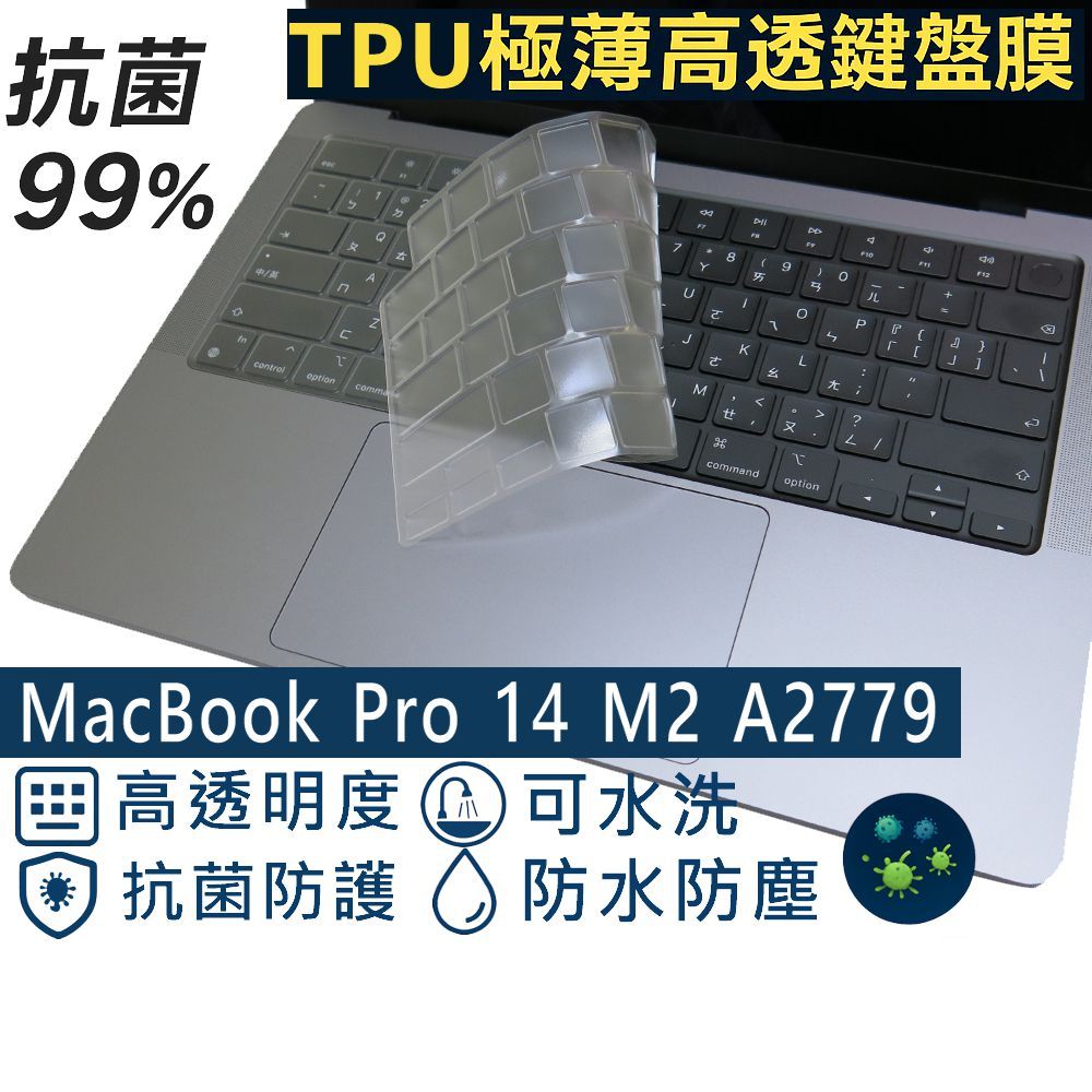 【Ezstick】MacBook Pro 14 M2 A2779 奈米銀抗菌TPU 鍵盤保護膜 鍵盤膜鍵盤膜|抗藍光亮面螢幕貼-單購|磁吸式防窺片-單購|機身貼(含上蓋+鍵盤週圍+底部貼)共三張|鍵盤膜+筆電超細纖維布285*196mm|鍵盤膜+觸控板貼+施工刮板Keyboard & Trackpad CoversEZstick 3C商品保護賣場