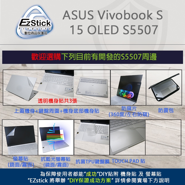 【Ezstick】ASUS S5507 S5507QA 筆電機身貼|霧面質感款|上蓋+鍵盤週圍+底部貼|酷玩銀專用抗菌TPU鍵盤膜-單購|機身貼+筆電超細纖維布331*230mm|機身貼(含上蓋+鍵盤週圍+底部貼)共三張|鏡面螢幕貼(加購價)-單購|霧面螢幕貼(加購價)-單購|抗藍光鏡面螢幕貼(加購價)-單購|抗藍光霧面螢幕貼(加購價)-單購|抗藍光防窺片 (左右防窺)-單購|抗藍光防窺片(360度防窺)-單購|機身貼+觸控板貼OthersEZstick 3C商品保護賣場