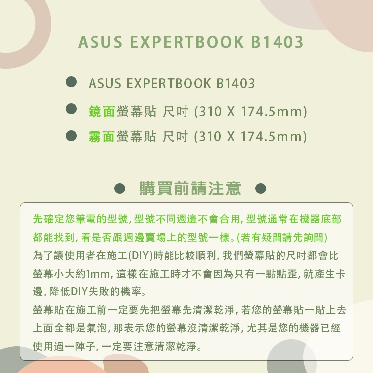 【Ezstick】ASUS ExpertBook B1403 B1403CVA 靜電式 螢幕貼 (可選鏡面或霧面)鏡面螢幕貼|霧面螢幕貼Laptop Skins & CoversEZstick 3C商品保護賣場
