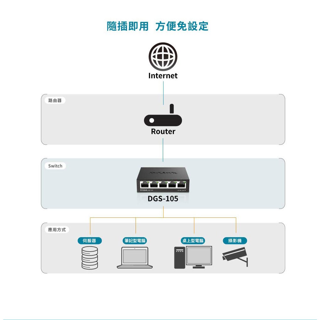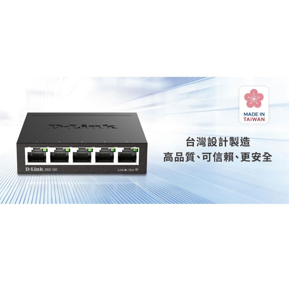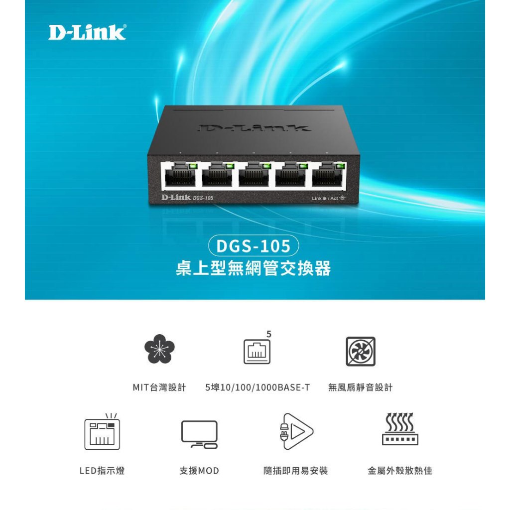 D-Link 友訊 DGS-105 5埠 台灣製造 桌上型 隨插即用 易安裝 乙太網路 網路交換器(新品/福利品)新品-DGS-105Network Switches & PoED-Link官方旗艦店