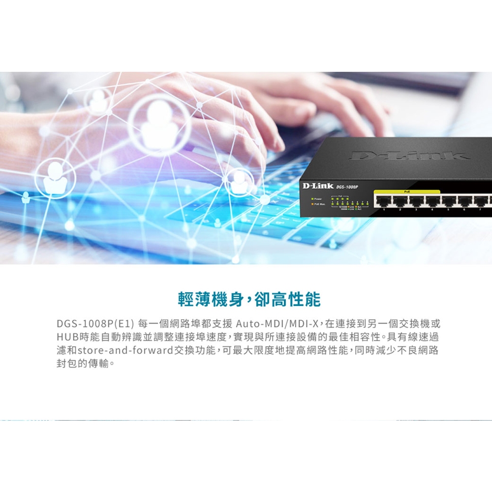 D-Link 友訊 DGS-1008P 8埠 60W Gigabit PoE 乙太網路 網路交換器 (新品/福利品)新品-DGS-1008P(E1)Network Switches & PoED-Link官方旗艦店