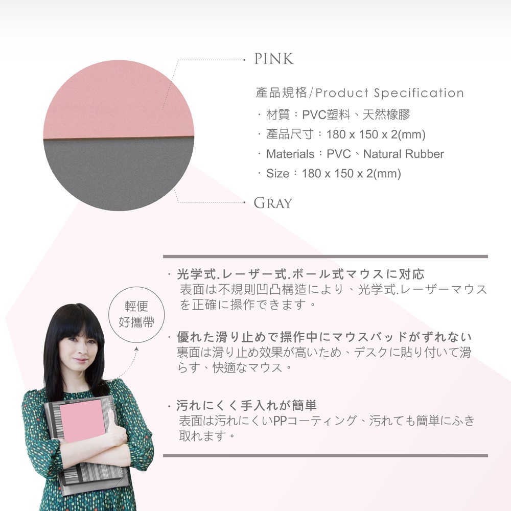 E-books MP2 無印風極簡滑鼠墊灰|粉紅Mouse PadsE-books 官方旗艦店