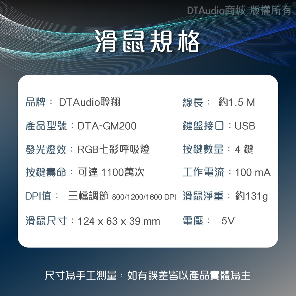聆翔 DTA-GM200 有線電競滑鼠 DPI調節 光學引擎 電競 遊戲 RGB呼吸燈 USB滑鼠 人體工學 聆翔旗艦店聆翔 DTA-GM200 有線電競滑鼠 DPI調節 光學引擎 電競 遊戲 RGB呼吸燈 USB滑鼠 人體工學 聆翔旗艦店MiceDTAudio 聆翔官方旗艦店-你的耳機喇叭專門家