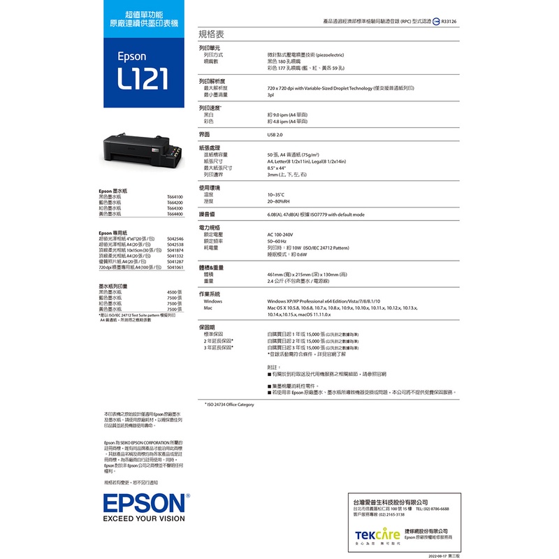 EPSON L121 超值單功能原廠連續供墨印表機 加購一組墨水9折 公司貨EPSON L121 超值單功能原廠連續供墨印表機 加購一組墨水9折 公司貨Printers, Scanners & Photocopy MachinesEPSON 官方旗艦店
