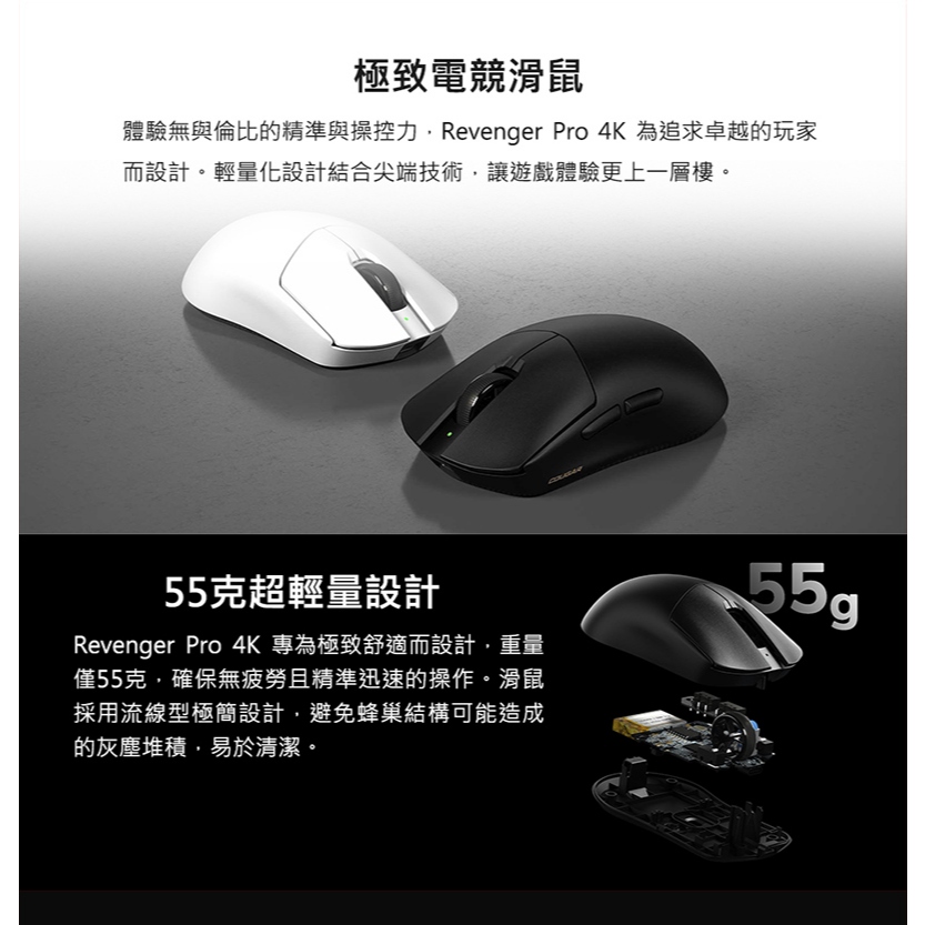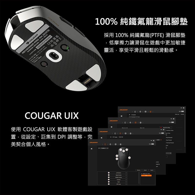 Cougar 美洲獅 REVENGER PRO 4K 無線滑鼠 雙模連線 輕量設計 電競滑鼠 無線電競滑鼠 遊戲滑鼠黑色|白色MiceCOUGAR 美洲獅官方授權旗艦店