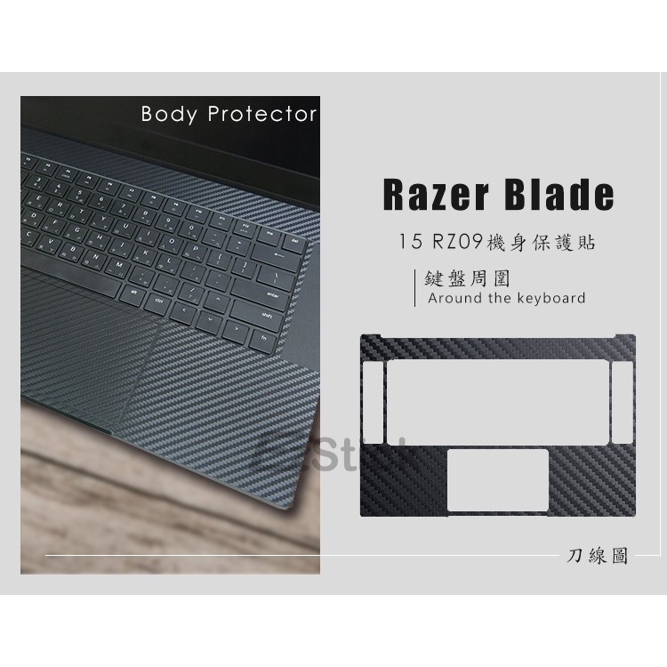 • 【Ezstick】Razer Blade 15 RZ09-0288 黑色卡夢紋機身貼 (上蓋貼、鍵盤週圍貼) DIY包膜