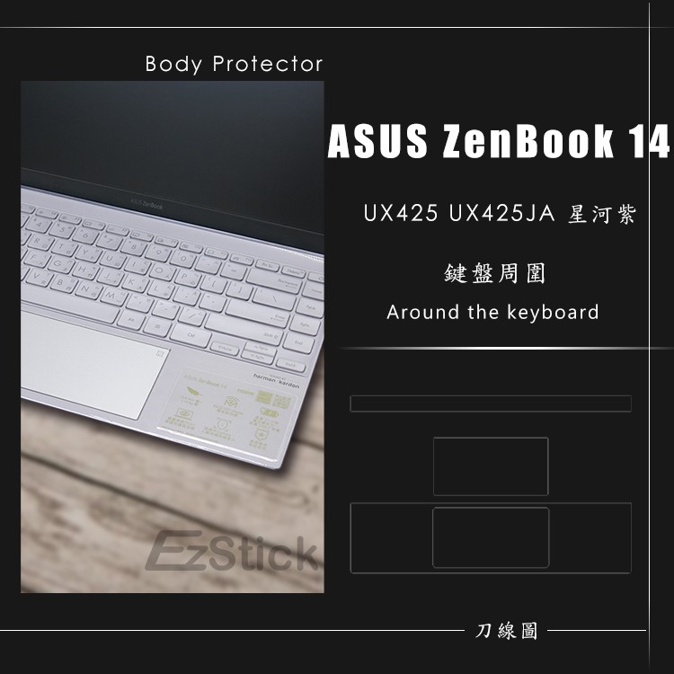 【Ezstick】ASUS UX425 UX425JA 筆電機身貼|霧面質感款|上蓋+鍵盤週圍+底部貼|星河紫專用抗藍光防窺片(左右防窺)|機身貼(含上蓋+鍵盤週圍+底部貼)共三張|鏡面螢幕貼(加購價)-單購|霧面螢幕貼(加購價)-單購|抗藍光鏡面螢幕貼(加購價)-單購|抗藍光霧面螢幕貼(加購價)-單購|抗藍光防窺片(360度防窺)|機身貼+觸控板貼|機身貼+筆電超細纖維布285*196mm|抗菌TPU鍵盤膜-單購Laptop Skins & CoversEZstick 3C商品保護賣場