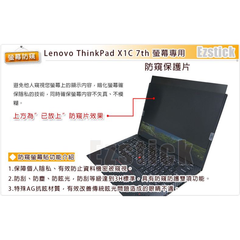 【Ezstick】Lenovo thinkPad X1C 7TH NB 筆電 抗藍光 防眩光 防窺片左右防窺|360度上下左右防窺|左右防窺+專用收納夾|360度上下左右防窺+專用收納夾|左右防窺+14吋筆電超細纖維布|360度上下左右防窺+14筆電超細纖維布Laptop Skins & CoversEZstick 3C商品保護賣場
