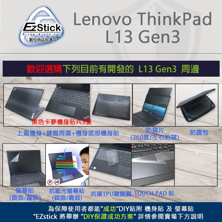 • 【Ezstick】Lenovo ThinkPad L13 Gen3 Gen4 NB 筆電 抗藍光 防眩光 防窺片