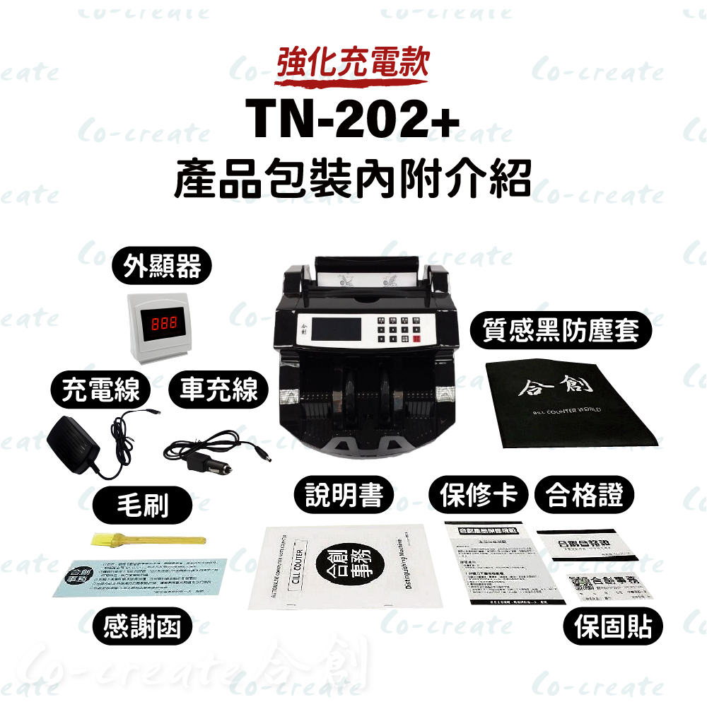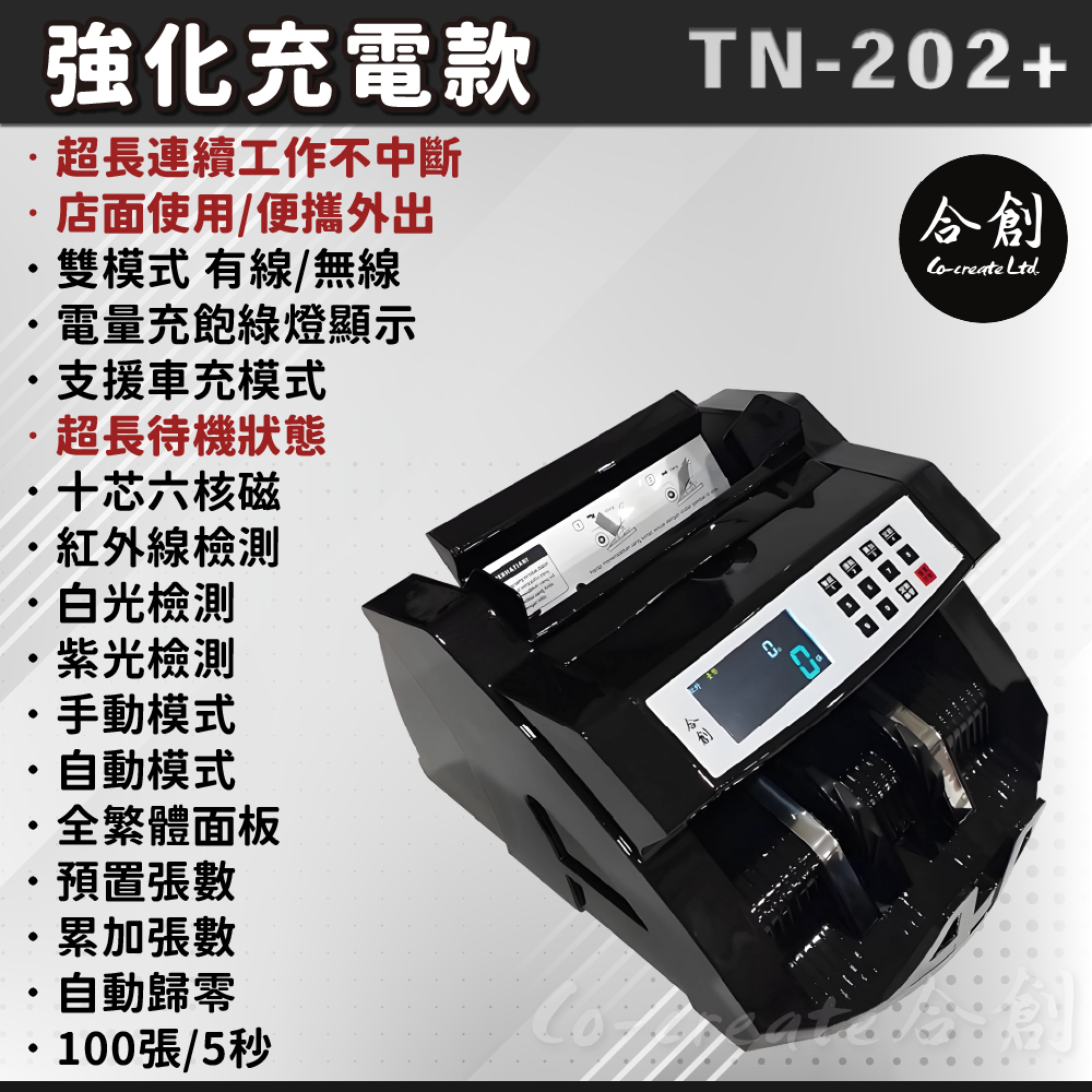 【Co-create 合創】TN-202+充電彩屏驗鈔機 (贈車充線+防塵套+免運)|充電點鈔機 點鈔機【TN101+】車充+電線+外顯+防塵套|【TN202+】車充+電線+外顯+防塵套|【TN588+】車充+電線+外顯+防塵套|【TN688+】車充+電線+外顯+防塵套Money CountersCo create 合創