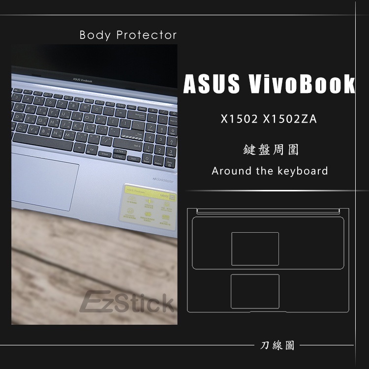 【Ezstick】ASUS X1502 X1502VA 筆電機身貼|霧面質感款|上蓋+鍵盤週圍+底部貼|冰河銀專用