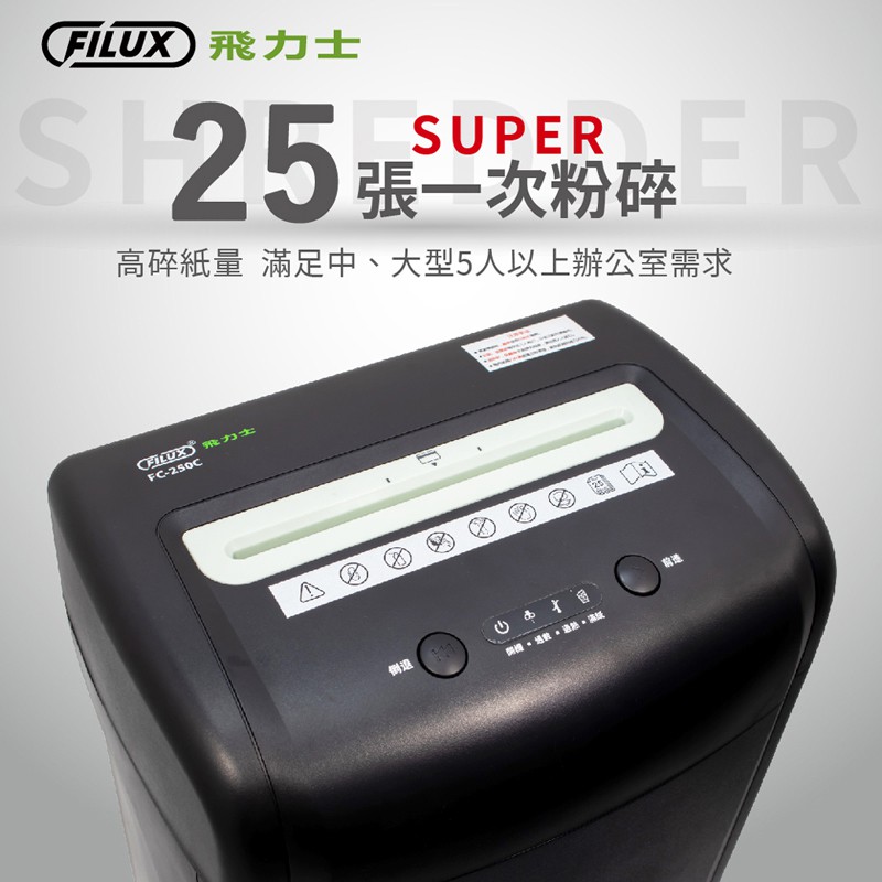 FILUX 飛力士 短碎狀專業碎紙機 FC-250C [原廠]FILUX 飛力士 短碎狀專業碎紙機 FC-250C [原廠]Paper ShreddersFILUX 飛力士