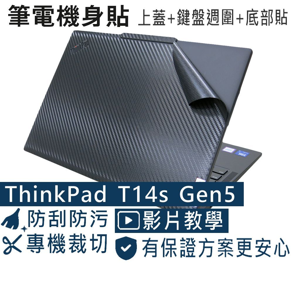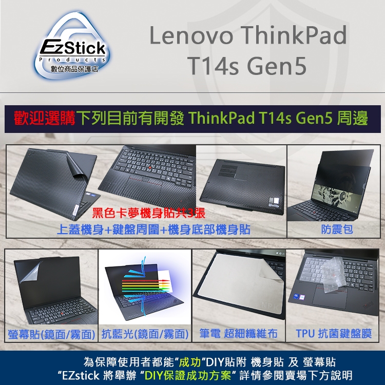 【Ezstick】Lenovo ThinkPad T14s Gen5 黑色卡夢紋 機身貼 (含上蓋+鍵盤週圍+底部貼)機身貼+筆電超細纖維布285*196mm|機身貼(含上蓋+鍵盤週圍+底部貼)共三張|鏡面螢幕貼(加購價)-單購|霧面螢幕貼(加購價)-單購|抗藍光鏡面螢幕貼(加購價)-單購|抗藍光霧面螢幕貼(加購價)-單購|抗藍光防窺片(左右防窺)-單購|抗藍光防窺片(360度防窺)-單購|抗菌TPU鍵盤膜-單購Laptop Skins & CoversEZstick 3C商品保護賣場