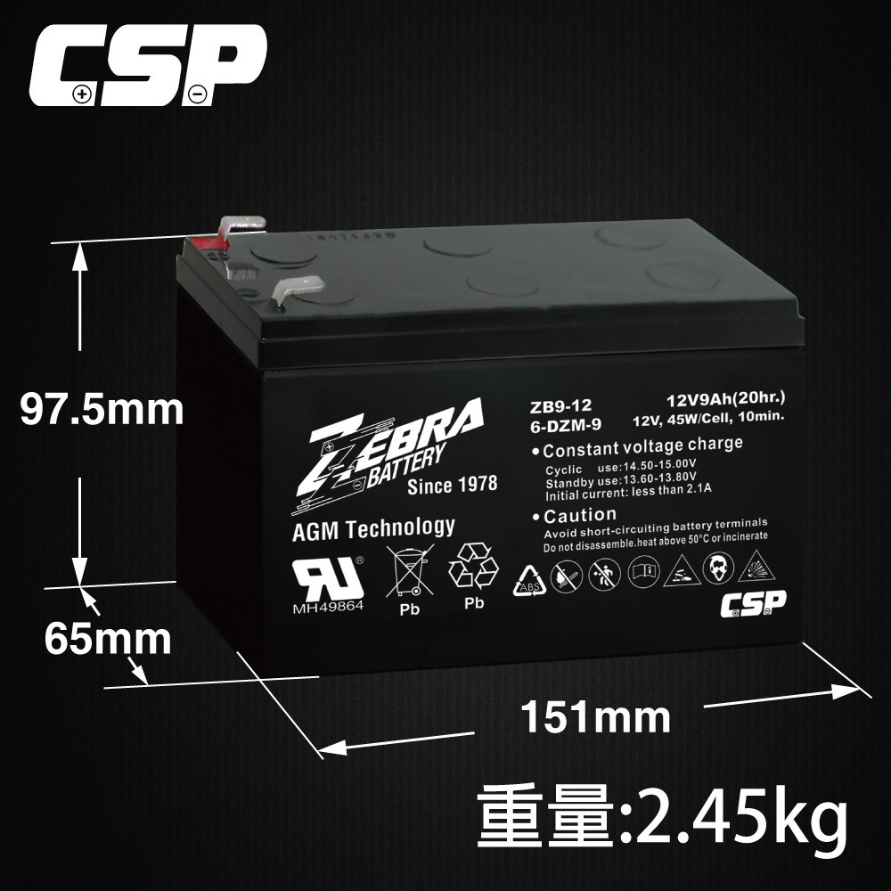 【童車電池】ZB9-12鉛酸電池 12V9Ah /等同NP7-12升級版 容量加大 小朋友電動車 電動車電池 UPSZB9-12*1顆|ZB9-12立端*1顆(電匠用)OthersCSP進煌 藍騎士 電池電瓶充電器 電瓶檢測器 膠體電池 太陽能電池