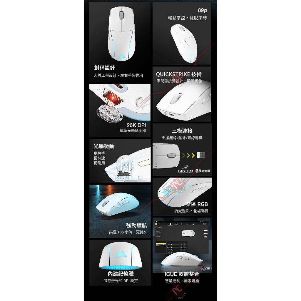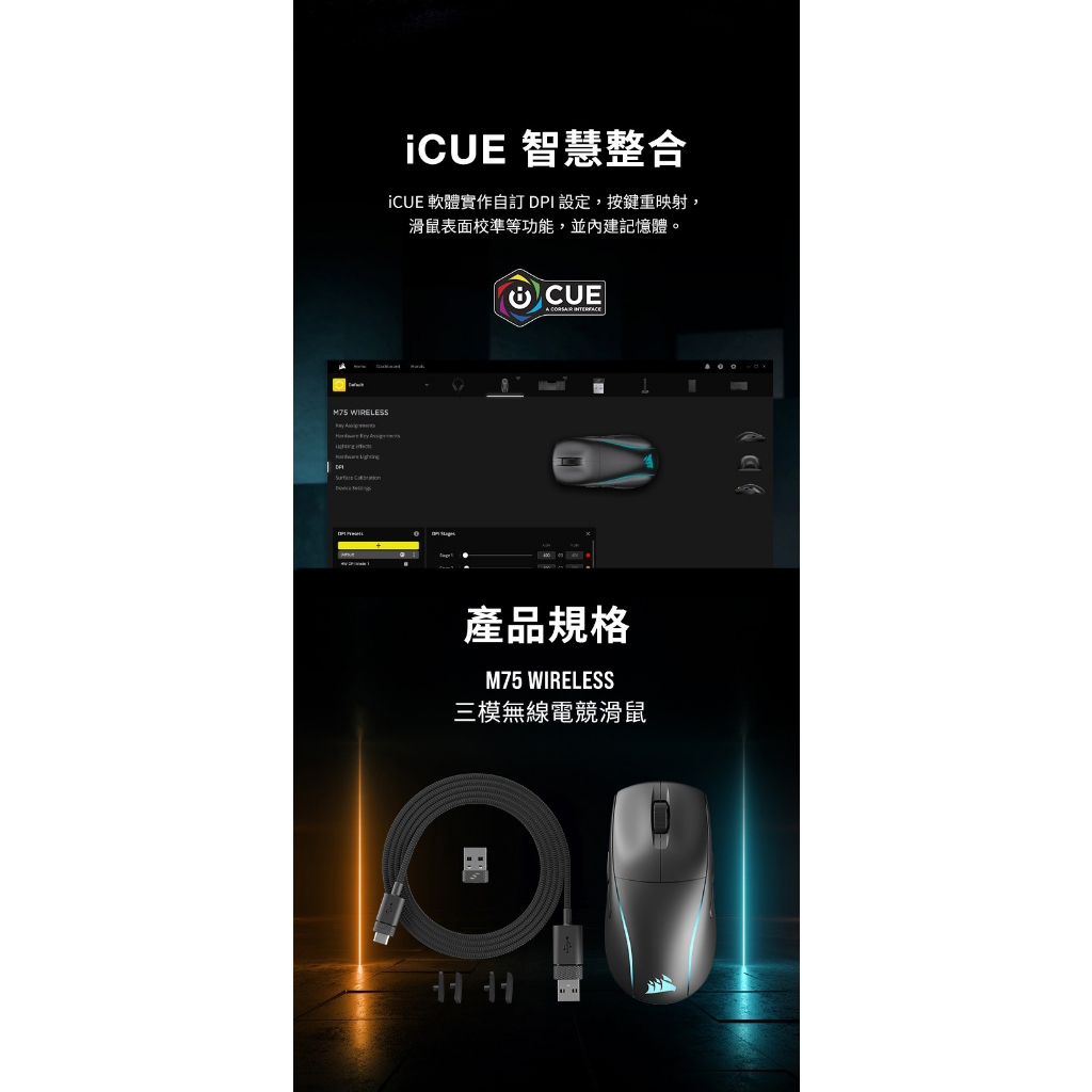 CORSAIR 海盜船 M75 WIRELESS RGB 三模無線電競滑鼠 2.4G/藍牙/有線 官方旗艦館黑色 RGB|白色 RGBMiceCORSAIR 官方授權旗艦店