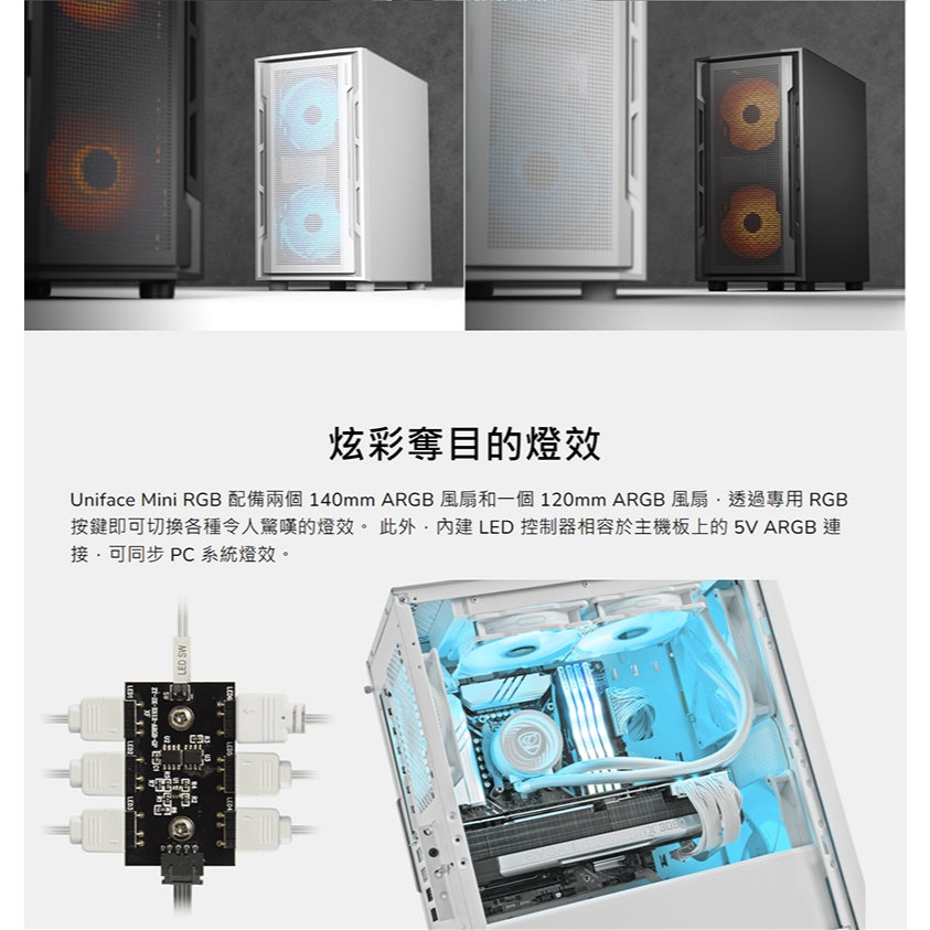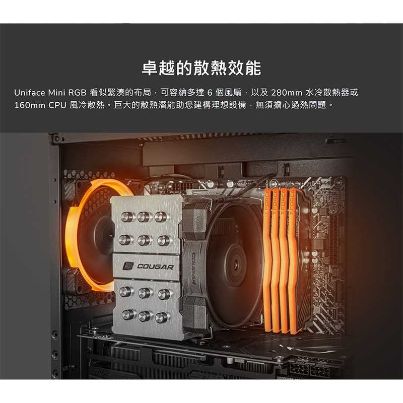 Cougar 美洲獅 UNIFACE MINI RGB 電腦機殼 支援最高340mm顯卡 機殼 主機殼 迷你機箱黑色|白色|♻福利品-黑色【拆封組裝測試.風扇已裝】PC CasesCOUGAR 美洲獅官方授權旗艦店