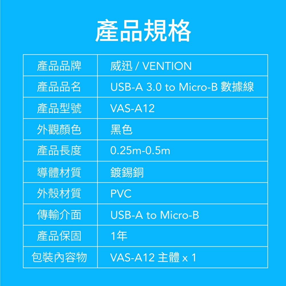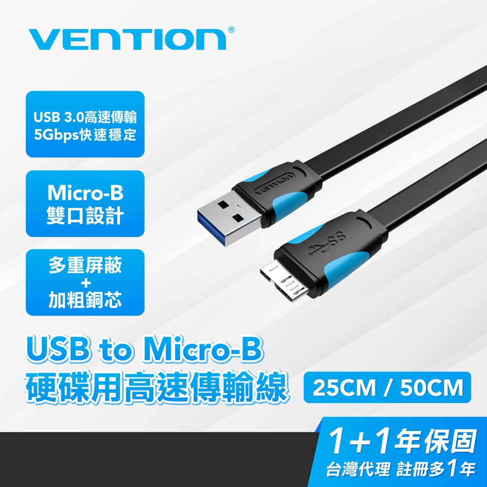 VENTION 威迅 USB3.0 USB-A to Micro-B 硬碟高速傳輸線 25CM/50CM0.25M (VAS系列)|0.5M (VAS系列)Network Cables & Connectorscudy丨bitro線上旗艦店
