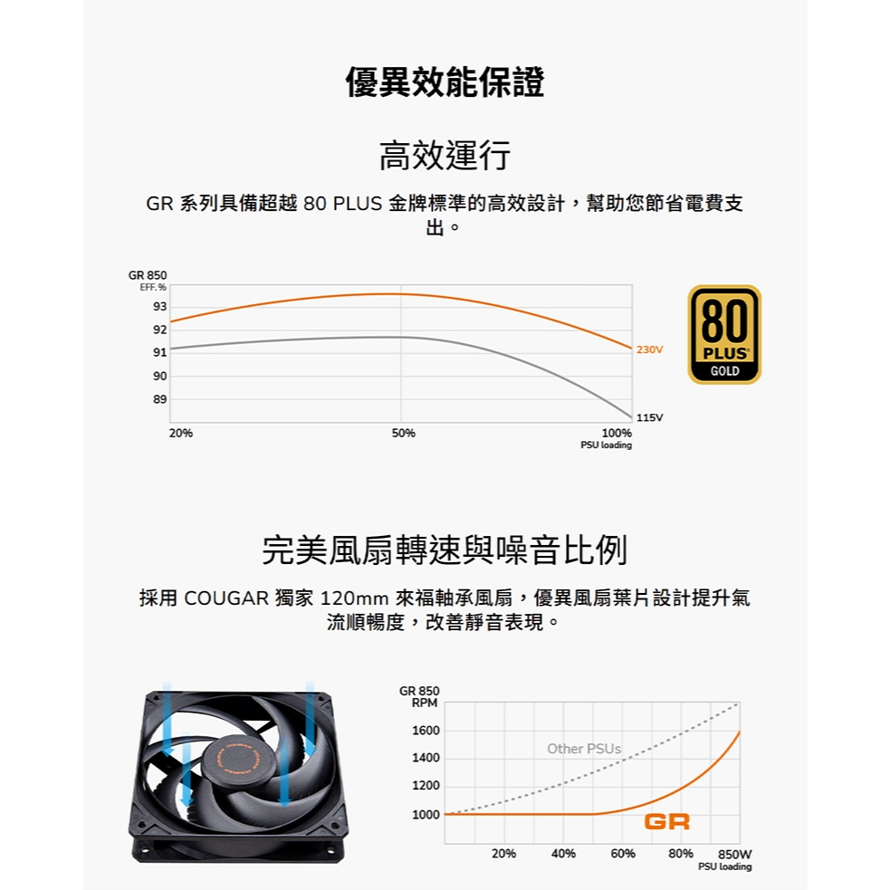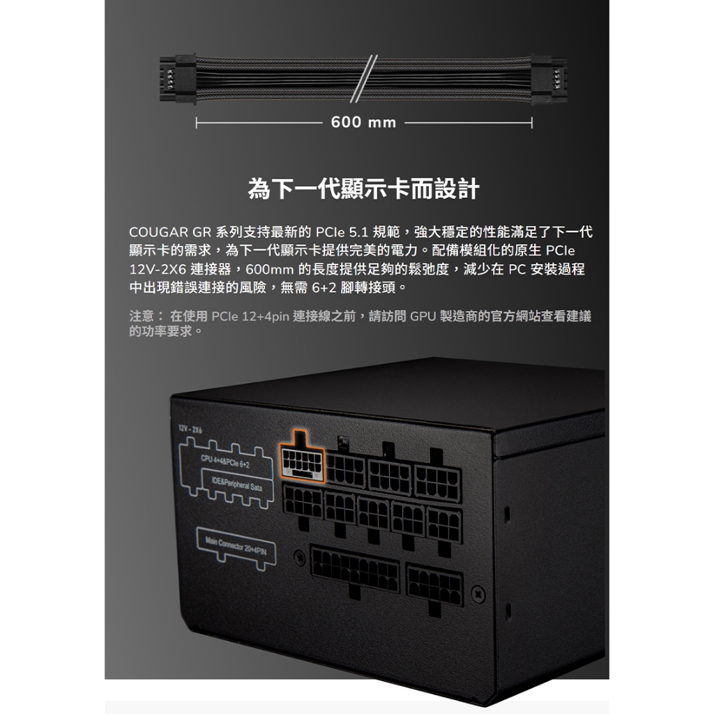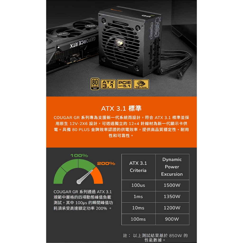 Cougar 美洲獅 GR 電源供應器 80Plus 金牌 PCIe 5.1 全模組 金牌電源供應器 電供750w|850wPower Supply UnitsCOUGAR 美洲獅官方授權旗艦店