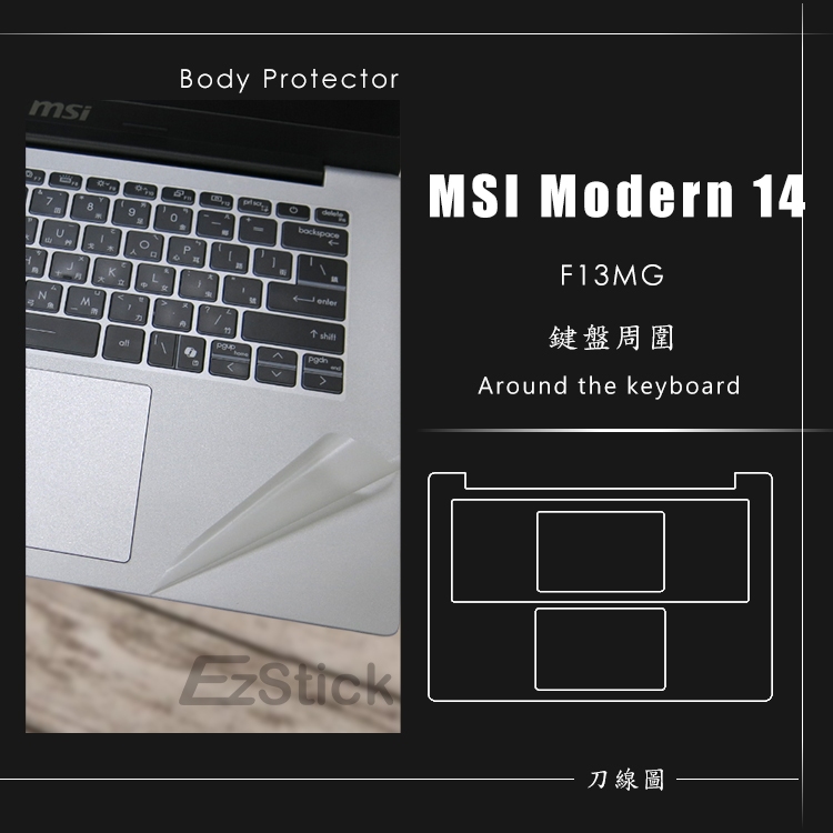 【Ezstick】MSI Modern 14 F13MG F1MG 透明 機身貼 (上蓋+鍵盤週圍貼) 共二張抗藍光霧面螢幕貼(加購價)-單購|抗藍光防窺片(左右防窺)-單購|抗藍光防窺片(360度防窺)-單購|機身貼+觸控板貼|機身貼+筆電超細纖維布285*196mm|機身貼(含上蓋+鍵盤週圍貼)共二張|鏡面螢幕貼(加購價)-單購|霧面螢幕貼(加購價)-單購|抗藍光鏡面螢幕貼(加購價)-單購|TPU鍵盤膜Laptop Skins & CoversEZstick 3C商品保護賣場