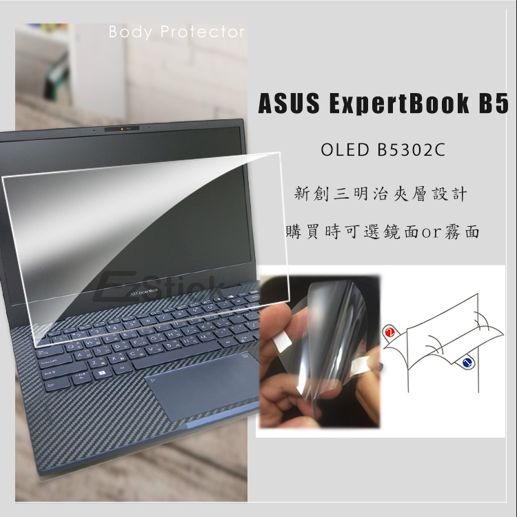 【Ezstick】ASUS ExpertBook B5 OLED B5302C 靜電式 螢幕貼 (可選鏡面或霧面)霧面螢幕貼|鏡面螢幕貼Laptop Skins & CoversEZstick 3C商品保護賣場
