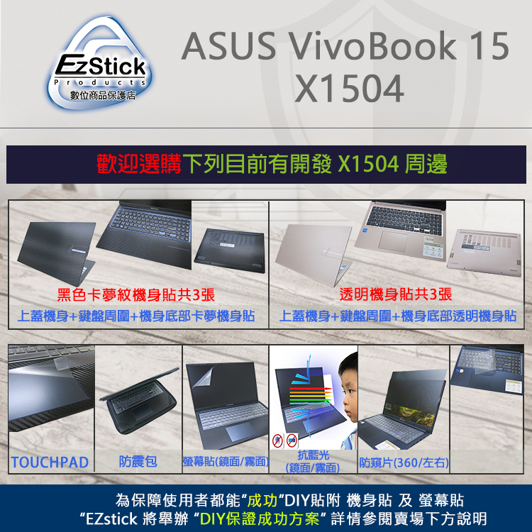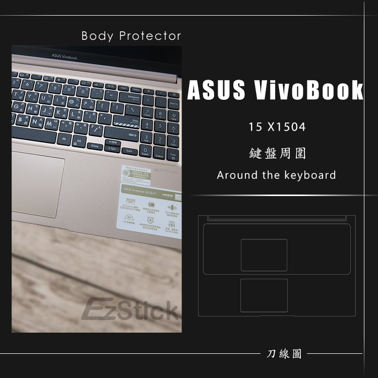 【Ezstick】ASUS X1504 X1504VA 筆電機身貼|霧面質感款|上蓋+鍵盤週圍+底部貼|蜜誘金專用機身貼(含上蓋+鍵盤週圍+底部貼)共三張|鏡面螢幕貼(加購價)-單購|霧面螢幕貼(加購價)-單購|抗藍光鏡面螢幕貼(加購價)-單購|抗藍光霧面螢幕貼(加購價)-單購|抗藍光防窺片(左右防窺)-單購|抗藍光防窺片(360度防窺)-單購|機身貼+筆電超細纖維布331*230mm|抗菌TPU鍵盤膜-單購|機身貼+觸控板貼OthersEZstick 3C商品保護賣場