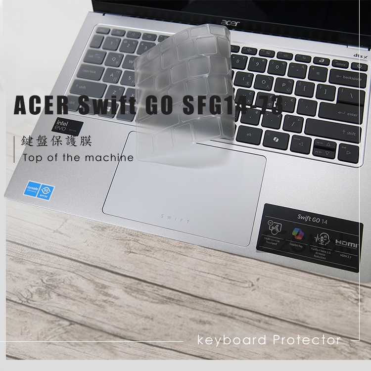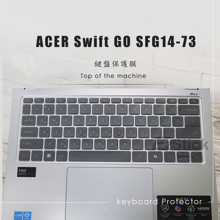 【Ezstick】Acer Swift Go 14 SFG14-73 TPU鍵盤膜|奈米銀抗菌 防水可水洗抗菌TPU鍵盤膜|鏡面螢幕貼(加購價)-單購|霧面螢幕貼(加購價)-單購|抗藍光鏡面螢幕貼(加購價)-單購|抗藍光霧面螢幕貼(加購價)-單購|抗藍光防窺片(左右防窺)-單購|抗藍光防窺片(360度防窺)-單購|透明機身貼(上蓋+鍵盤週圍+底部貼)|鍵盤膜+筆電超細纖維布285*196mm|鍵盤膜+觸控板貼+施工刮板Keyboard & Trackpad CoversEZstick 3C商品保護賣場