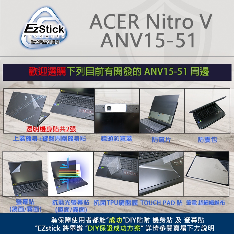 【Ezstick】ACER Nitro V ANV15-51 ANV15-41 靜電式筆電 螢幕貼 (可選鏡面或霧面)鏡面螢幕貼|霧面螢幕貼|筆電超細纖維布331*230mmLaptop Skins & CoversEZstick 3C商品保護賣場