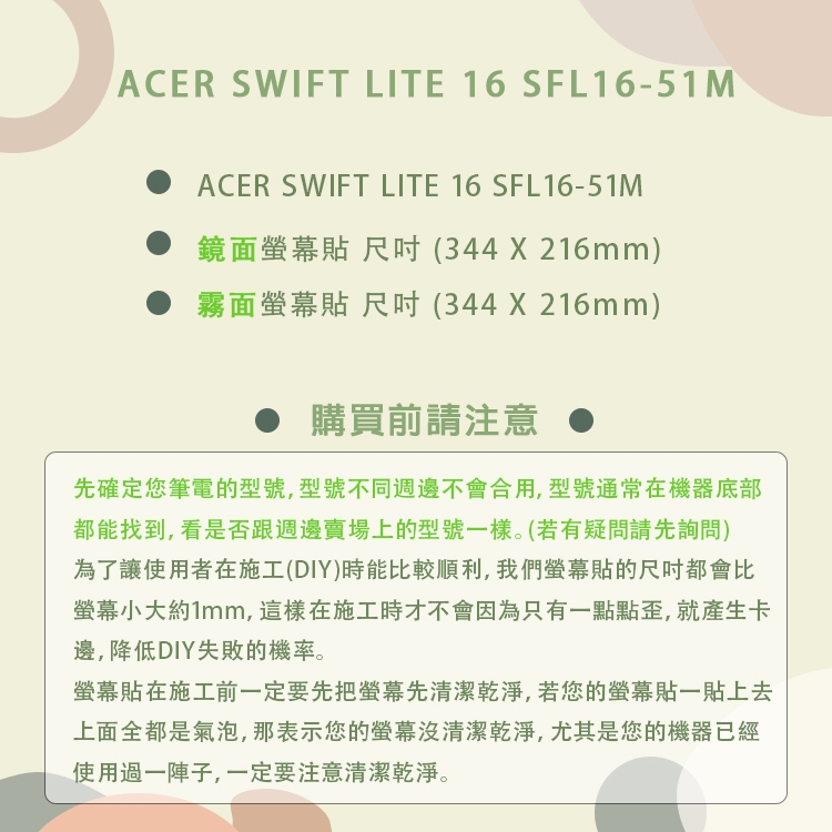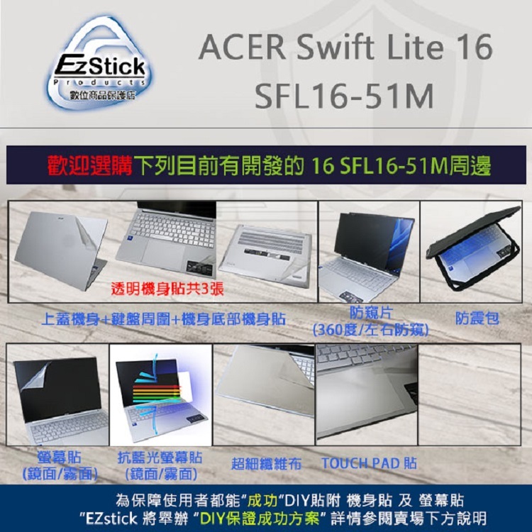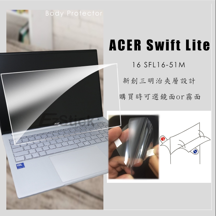 【Ezstick】ACER Swift Lite 16 SFL16-51M 靜電式 螢幕貼 (可選鏡面或霧面)鏡面螢幕貼|霧面螢幕貼|筆電超細纖維布331*230mmLaptop Skins & CoversEZstick 3C商品保護賣場