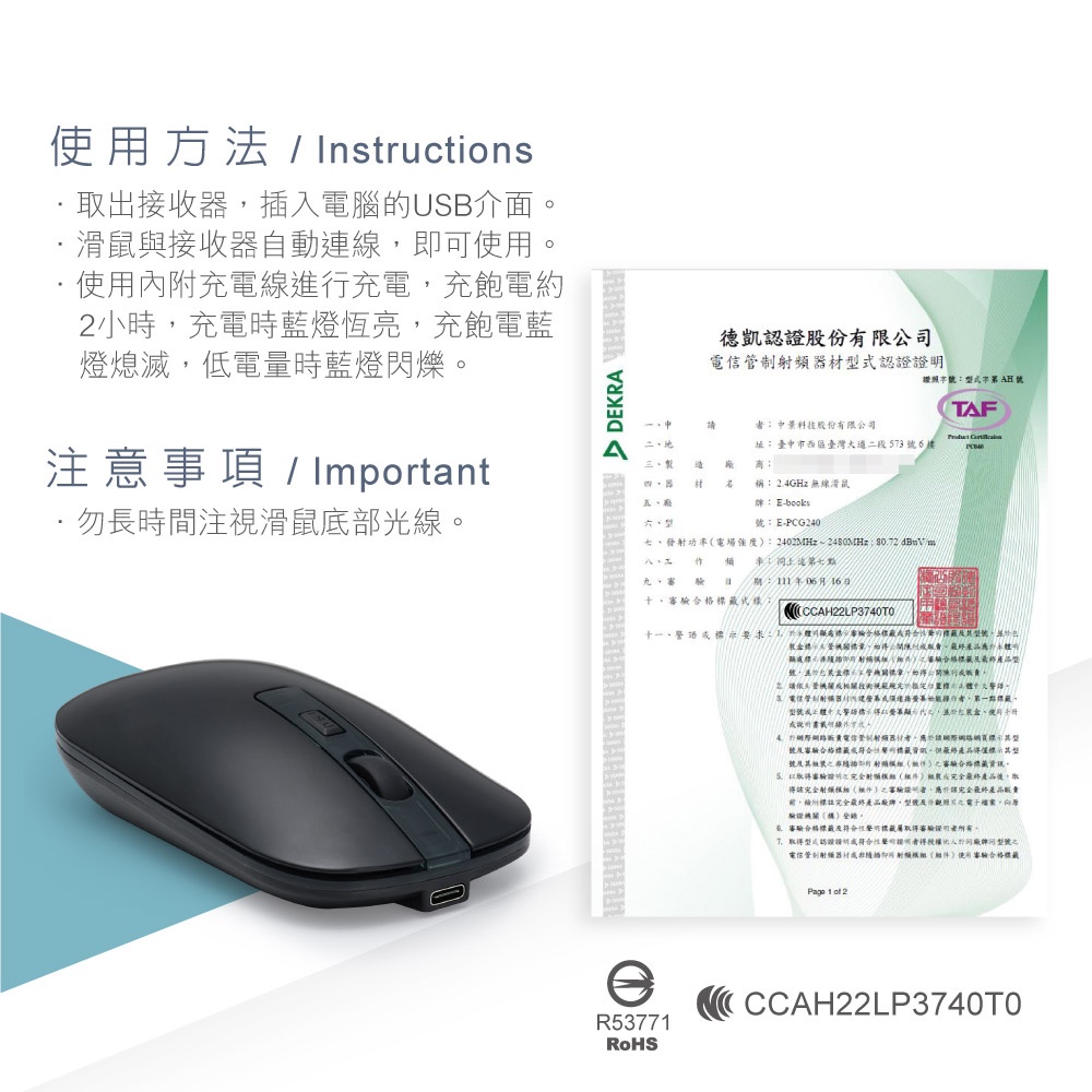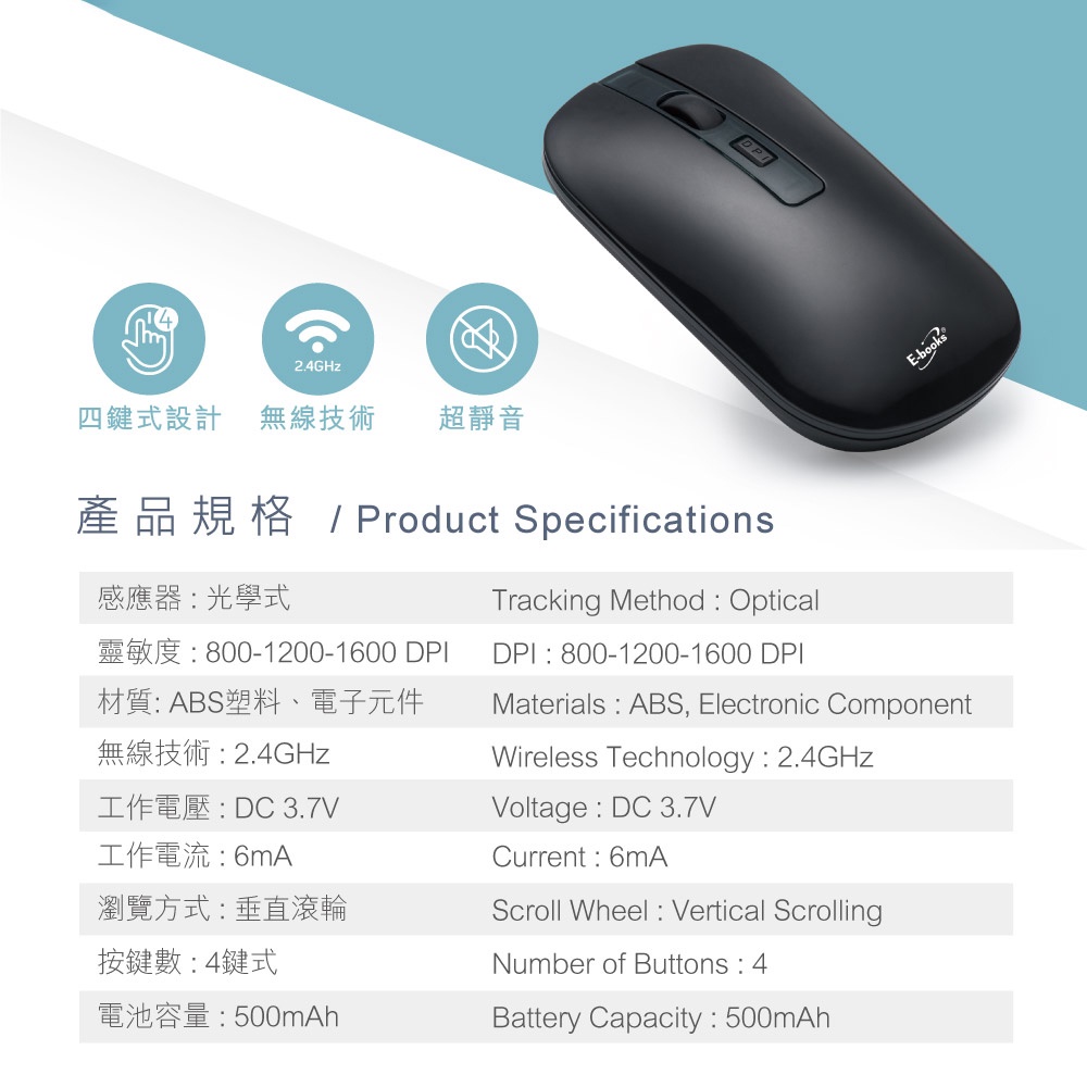 E-books M63 充電式四鍵超靜音無線滑鼠E-books M63 充電式四鍵超靜音無線滑鼠MiceE-books 官方旗艦店