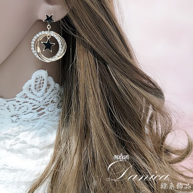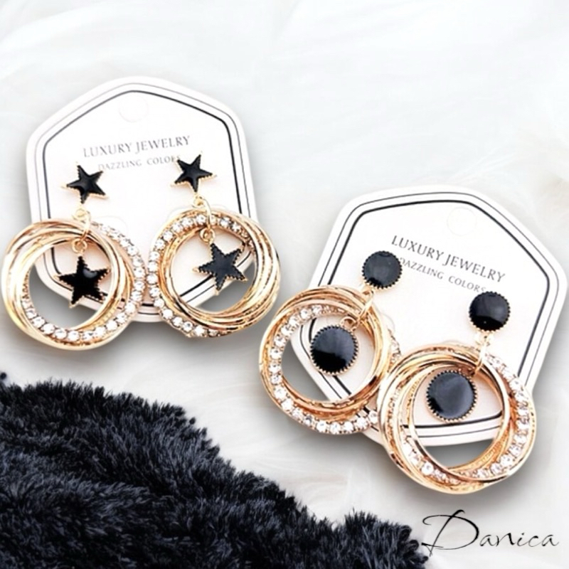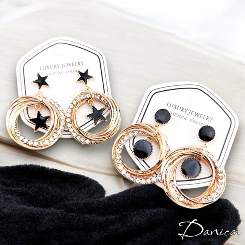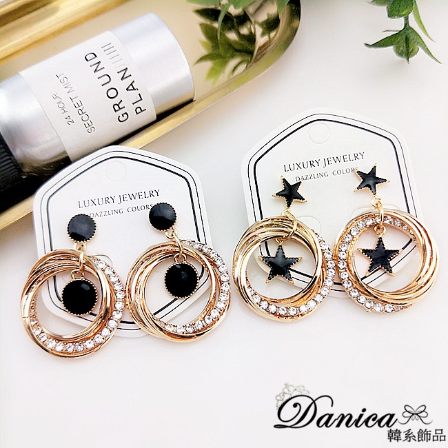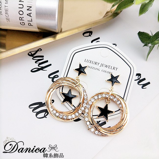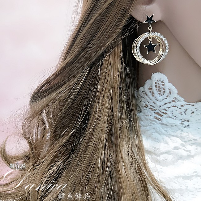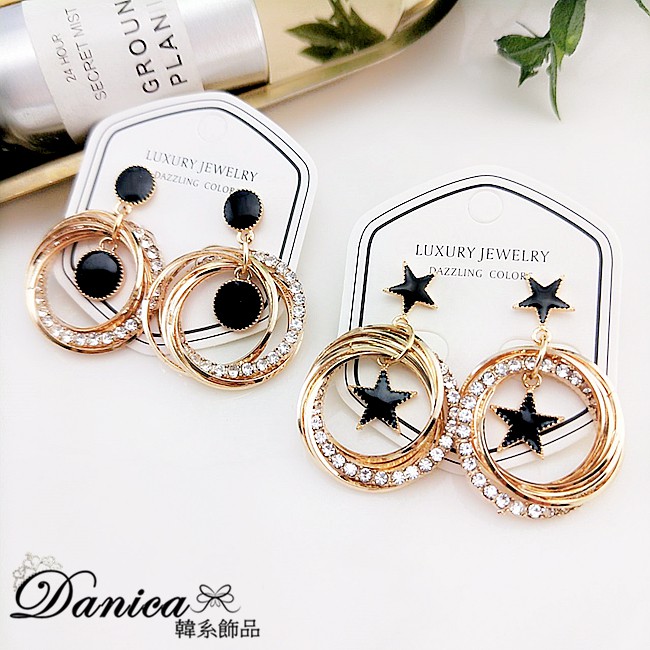 925銀針 韓國女神時尚氣質個性百搭幾何星星圓圈水鑽垂墜耳環 K93391 批發價 Danica 韓系飾品 韓國連線星星針式|圓形針式Danica 韓系飾品 耳環