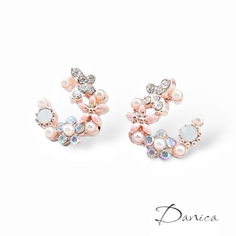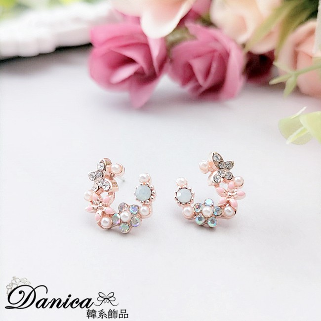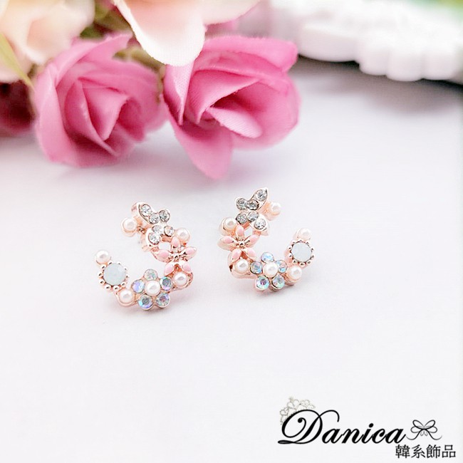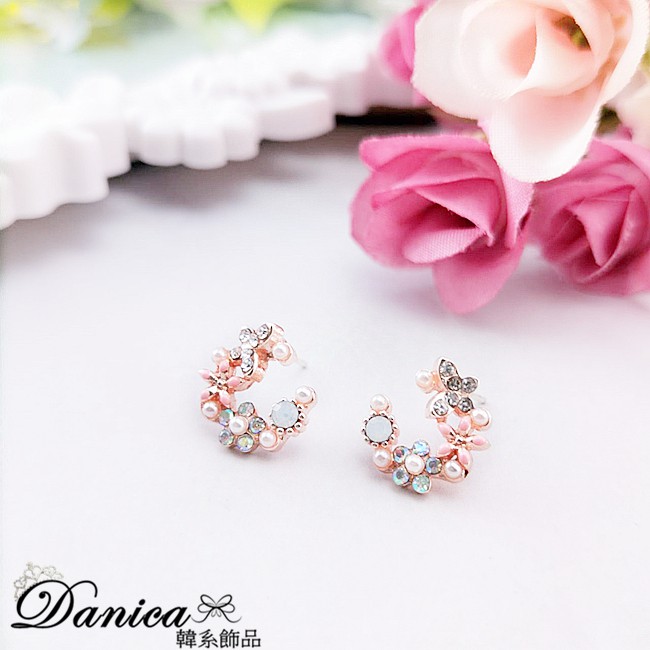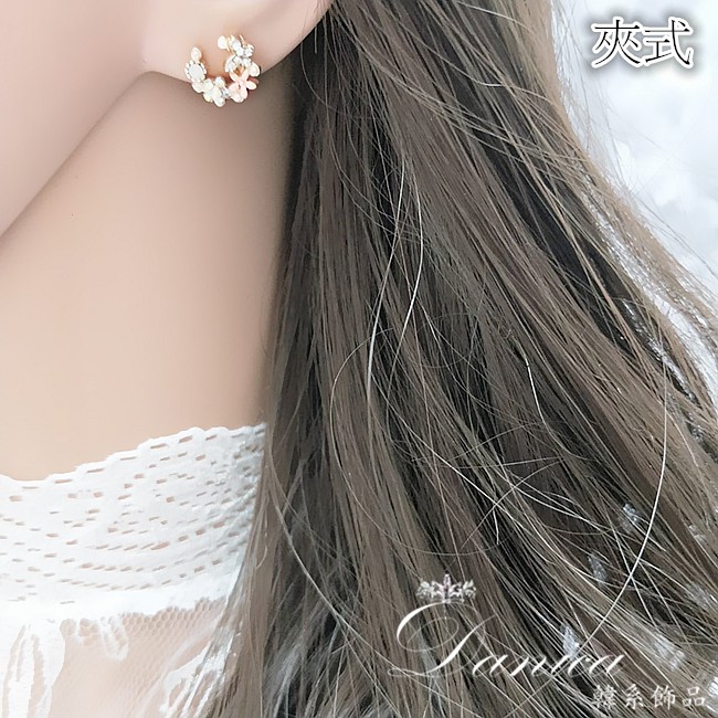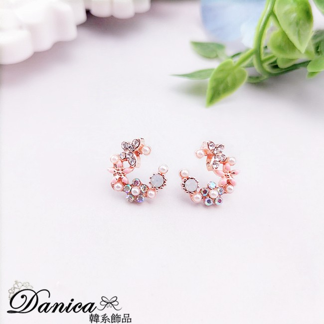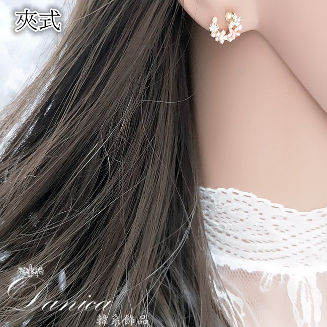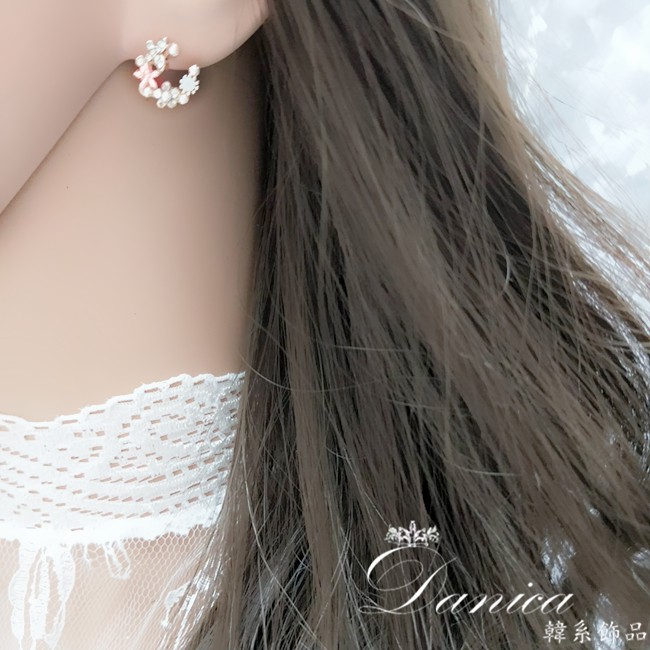 925銀針 夾式耳環 韓國女神魅力氣質浪漫花朵花圈珍珠水鑽耳環 K93494 台灣出貨 Danica 韓系飾品 韓國連線925銀針|夾式(無耳洞配戴)Danica 韓系飾品 耳環