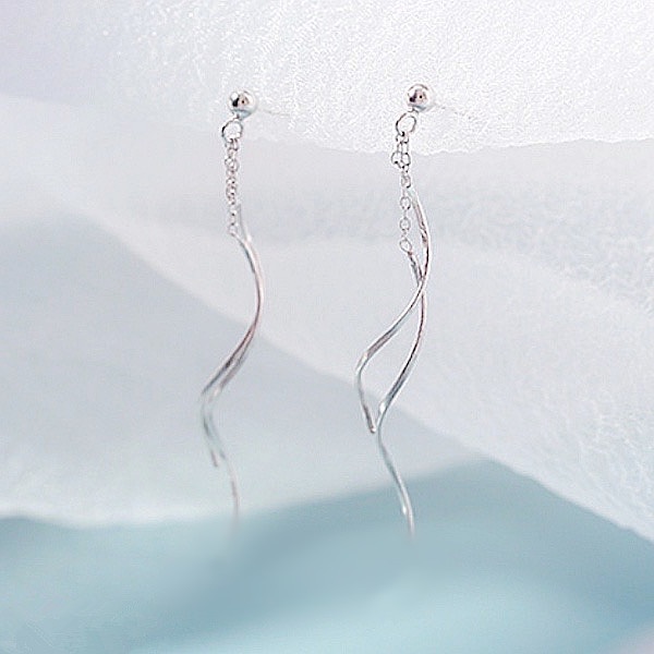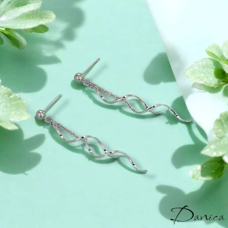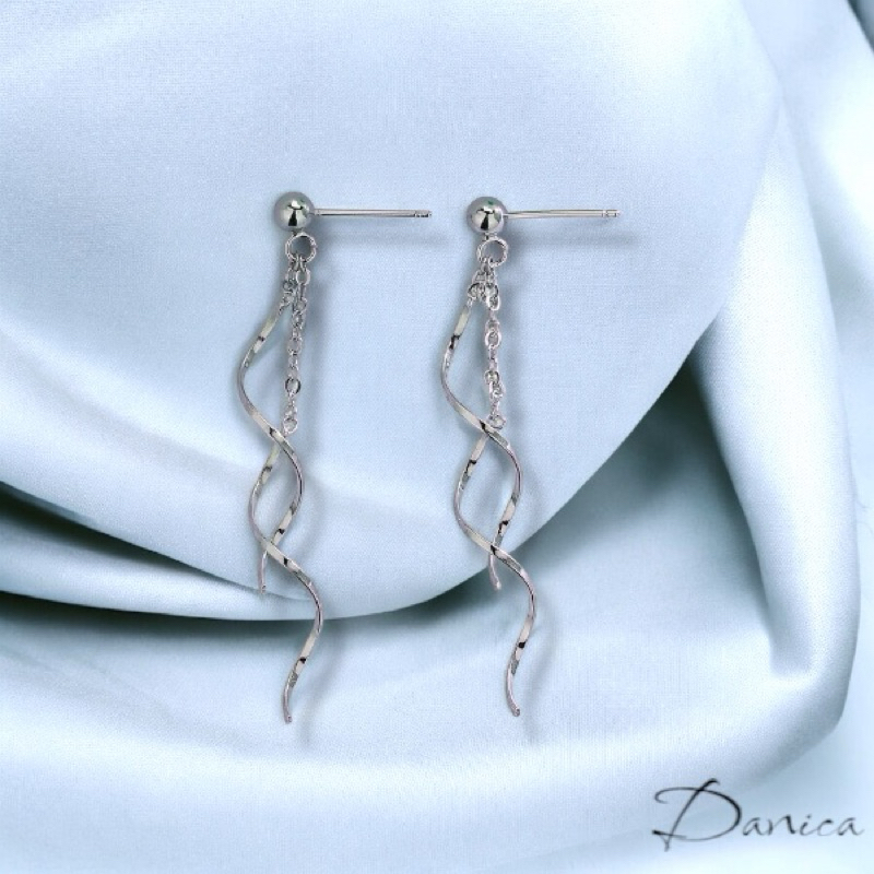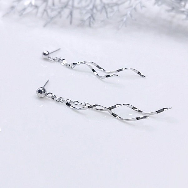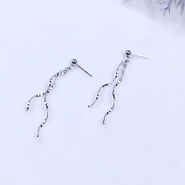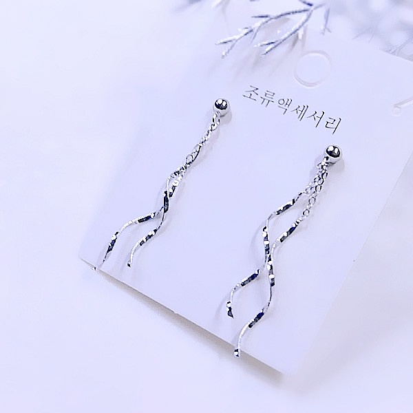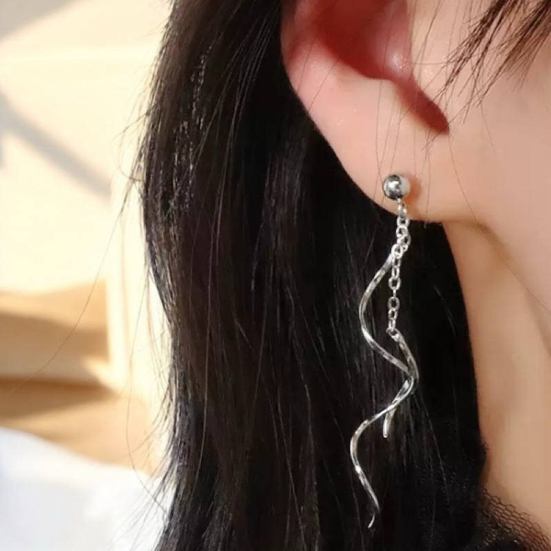 針式 夾式耳環 韓國簡約美學百搭波浪流蘇耳環 925銀針 A0060 台灣出貨 Danica 韓系飾品 韓國連銀色針式|銀色夾式(無耳洞配戴)Danica 韓系飾品 耳環