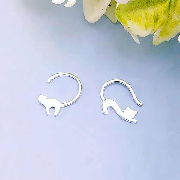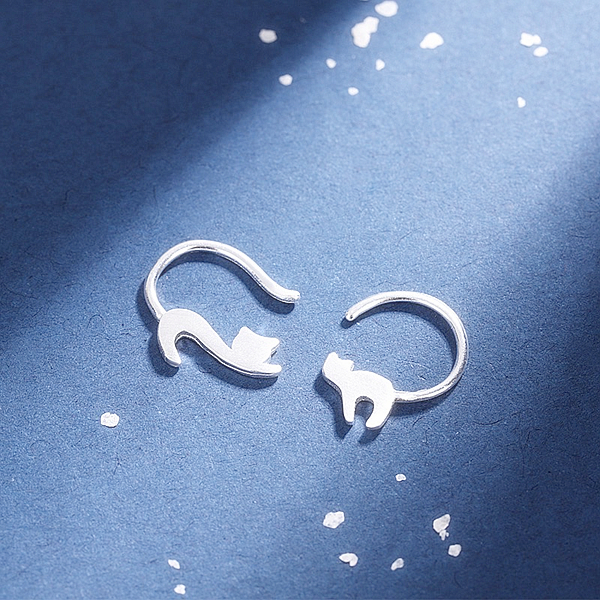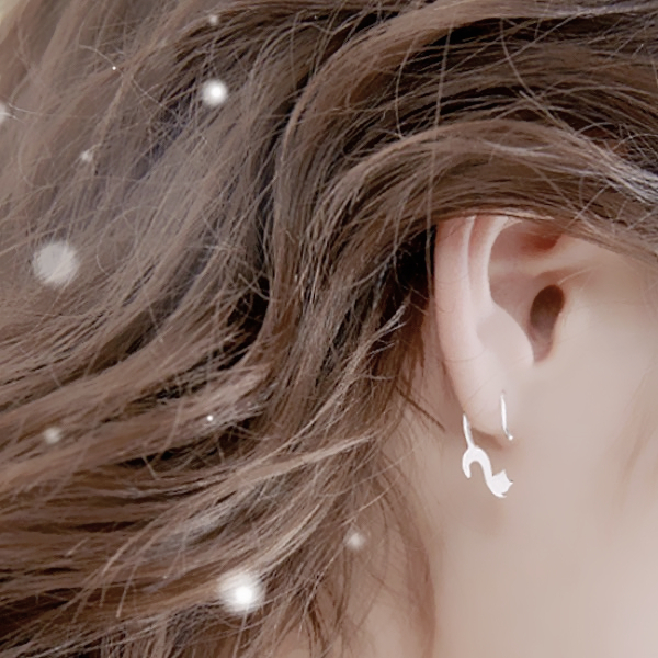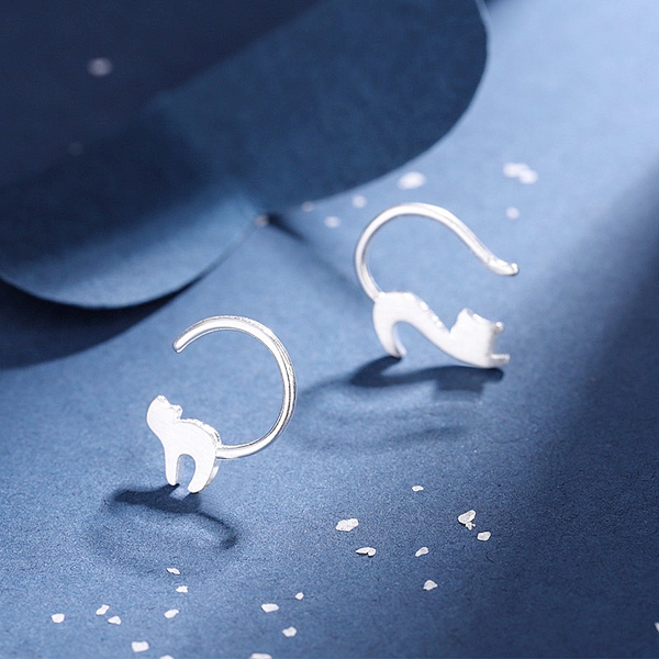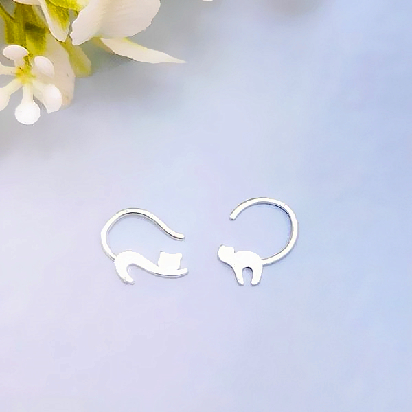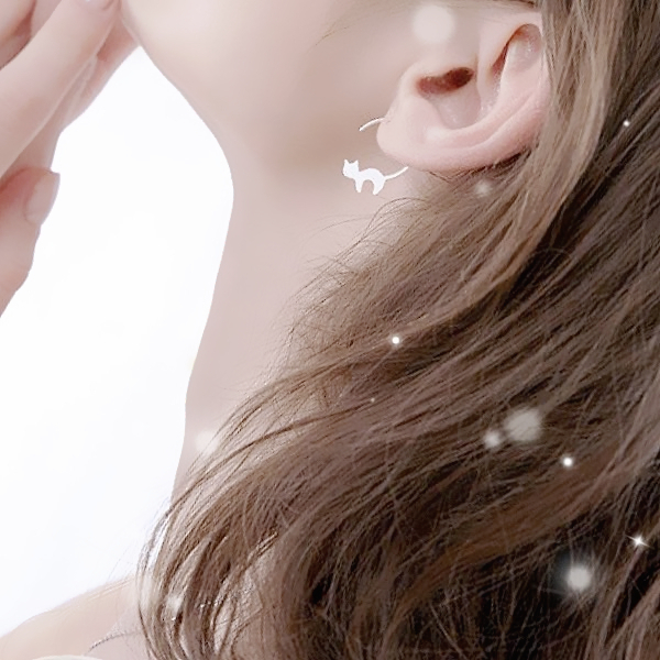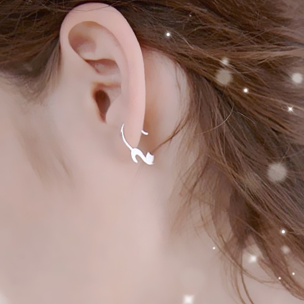 耳勾 韓國少女氣質甜美超萌俏皮貓咪不對稱耳環 925銀針 K94024 台灣出貨 Danica 韓系飾品如圖不對稱針式Danica 韓系飾品 耳環