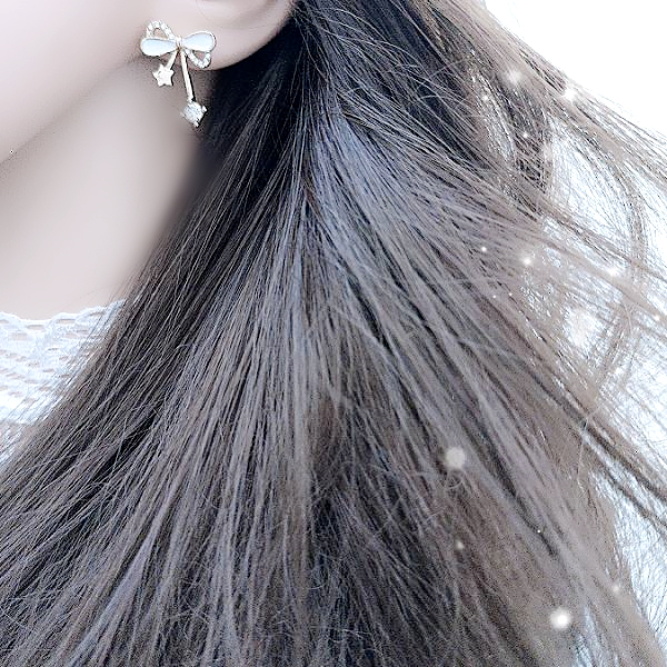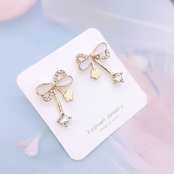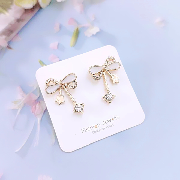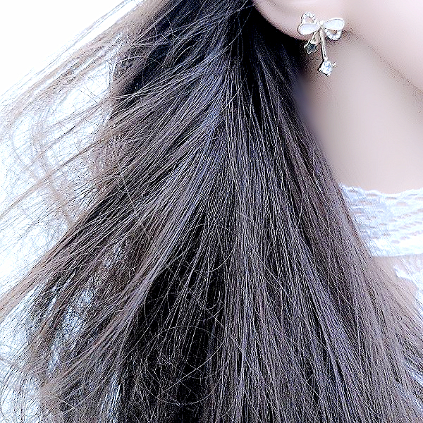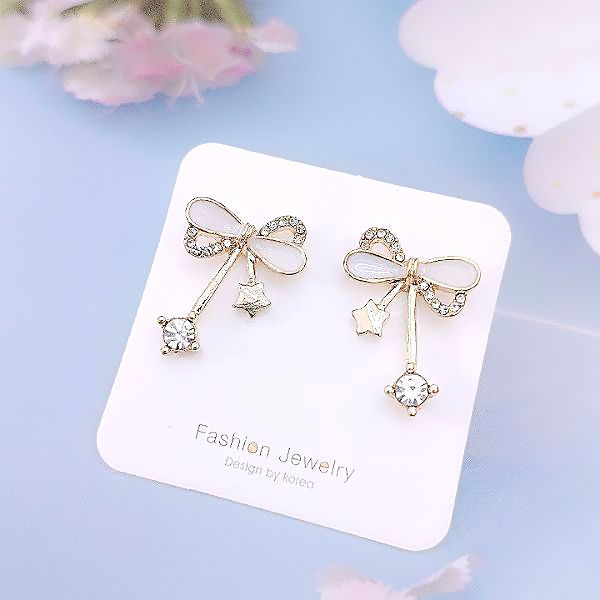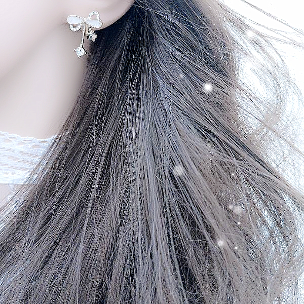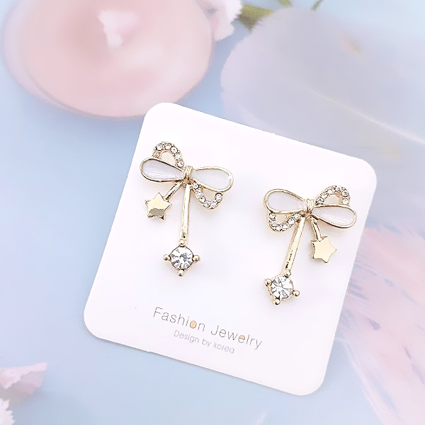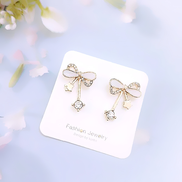 925銀針 夾式耳環 韓國女神氣質甜美法式蝴蝶結水鑽耳環 K94166 台灣出貨 Danica 韓系飾品 韓國連線金色針式|金色夾式(無耳洞配戴)Danica 韓系飾品 耳環