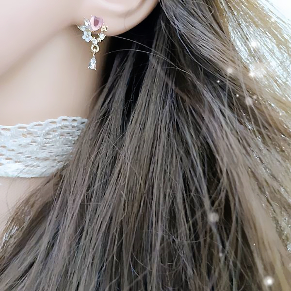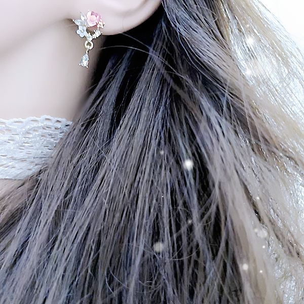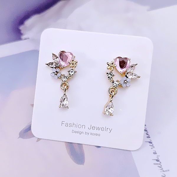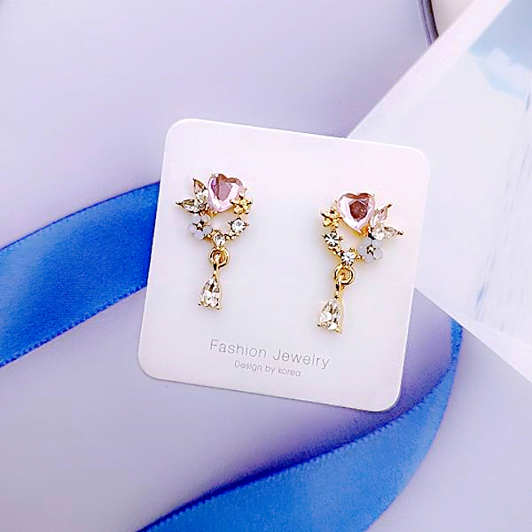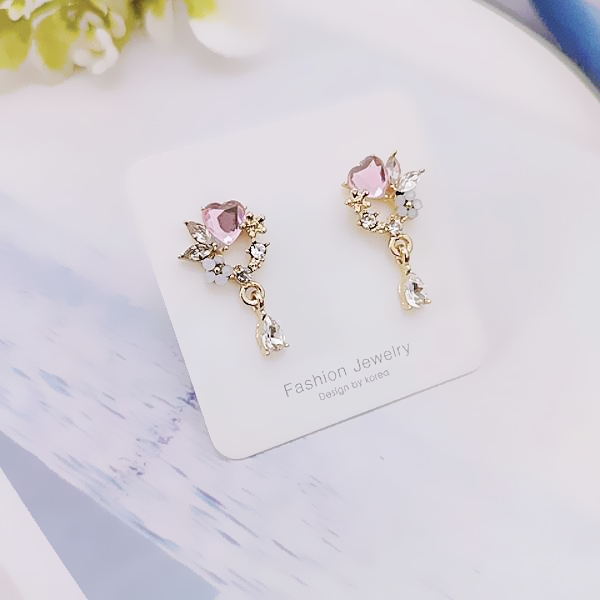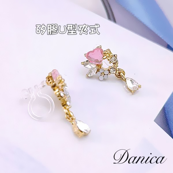 925銀針 夾式耳環 韓國仙女氣質甜美愛心花朵水鑽垂墜耳環 K94204 台灣出貨 Danica 韓系飾品 韓國連線如圖針式|如圖矽膠U型夾式(無耳洞配戴)Danica 韓系飾品 耳環