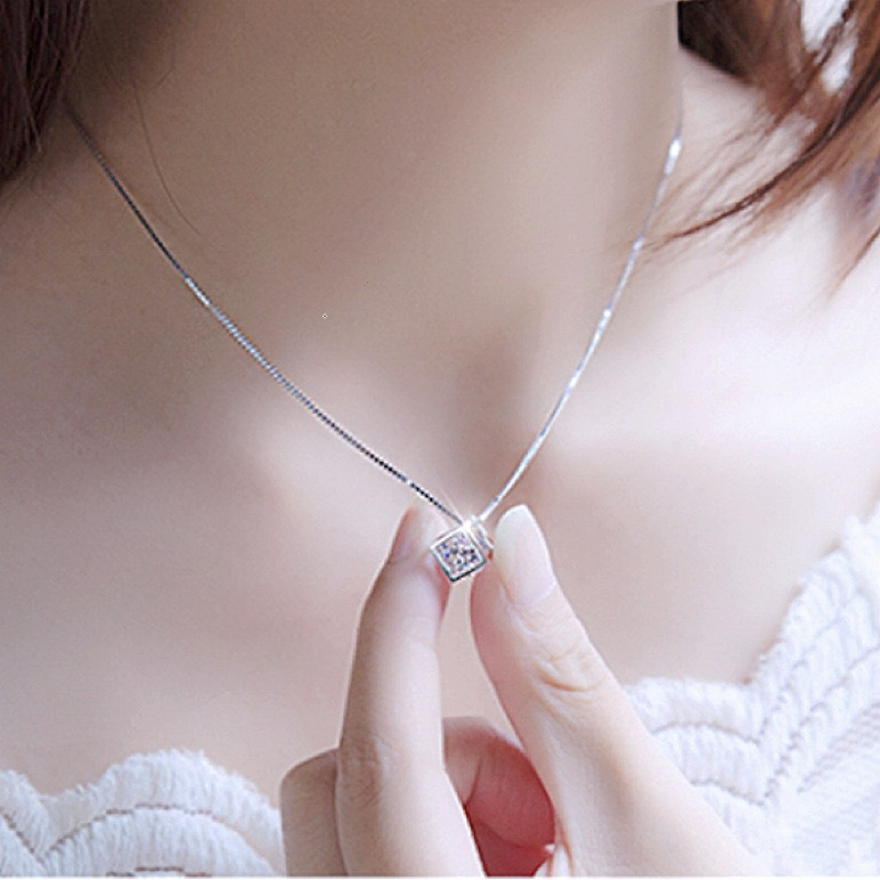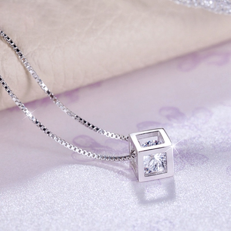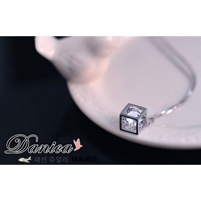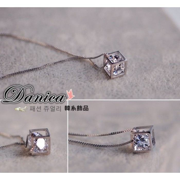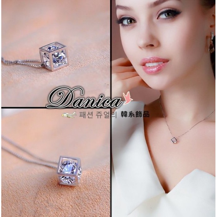 項鍊 熱賣專櫃CZ鑽氣質名媛最愛閃亮立體方塊八心八箭鋯石項鍊 K2385 台灣出貨Danica 韓系飾品 韓國連線銀色Danica 韓系飾品 耳環